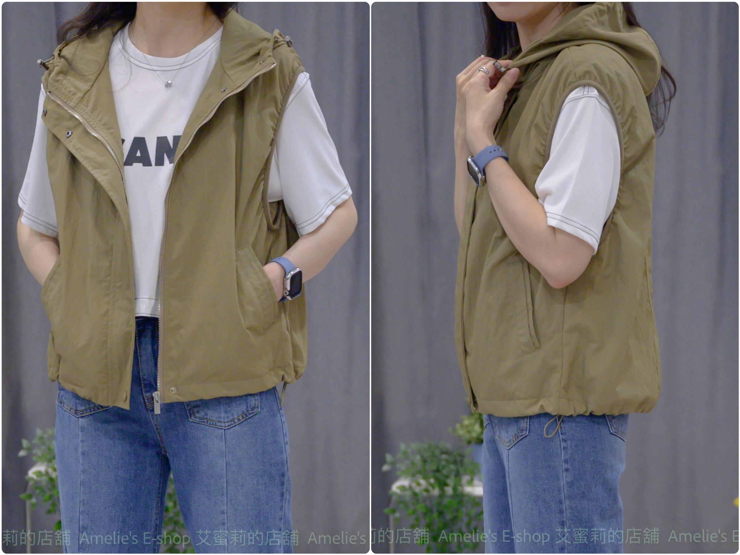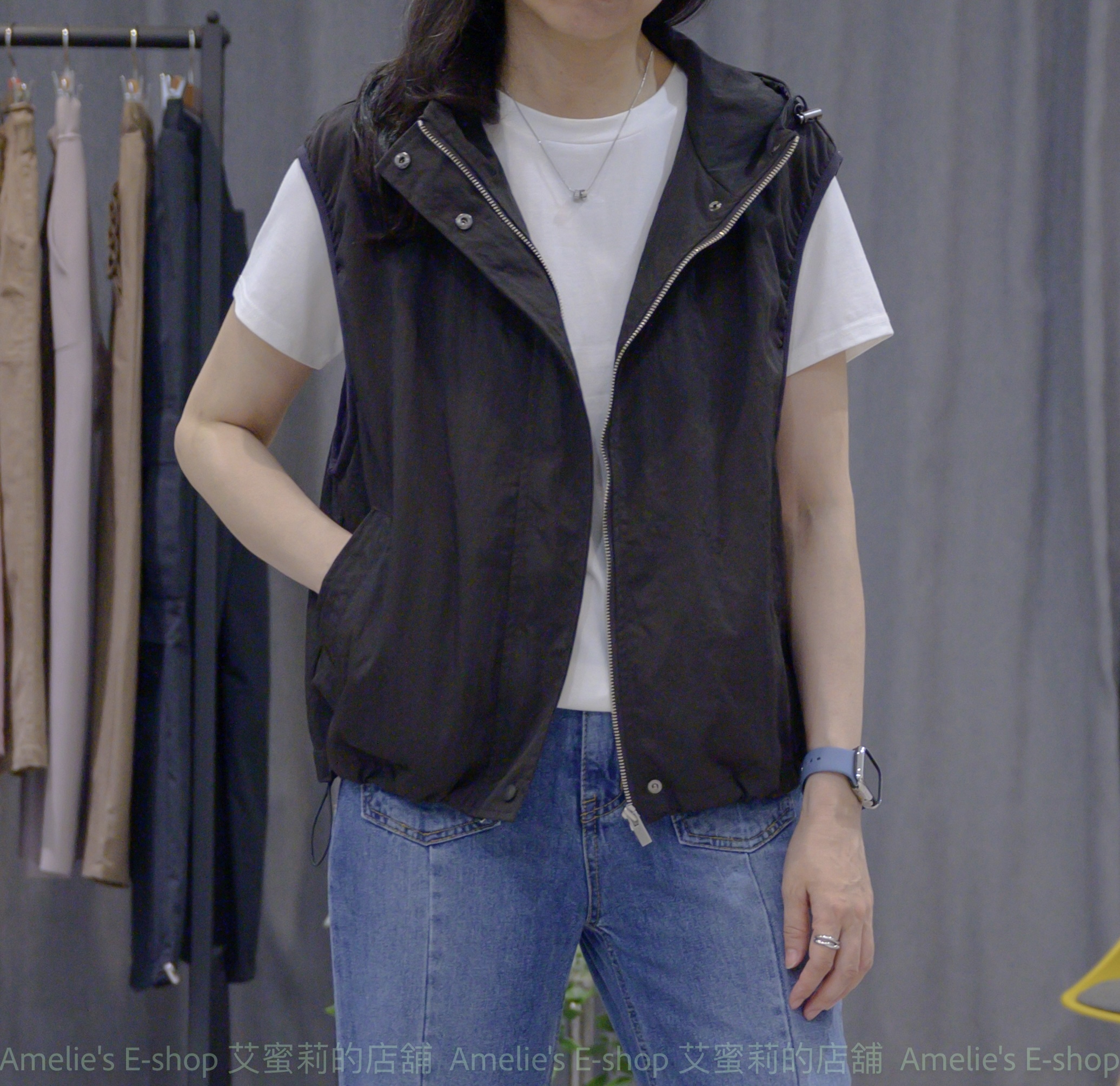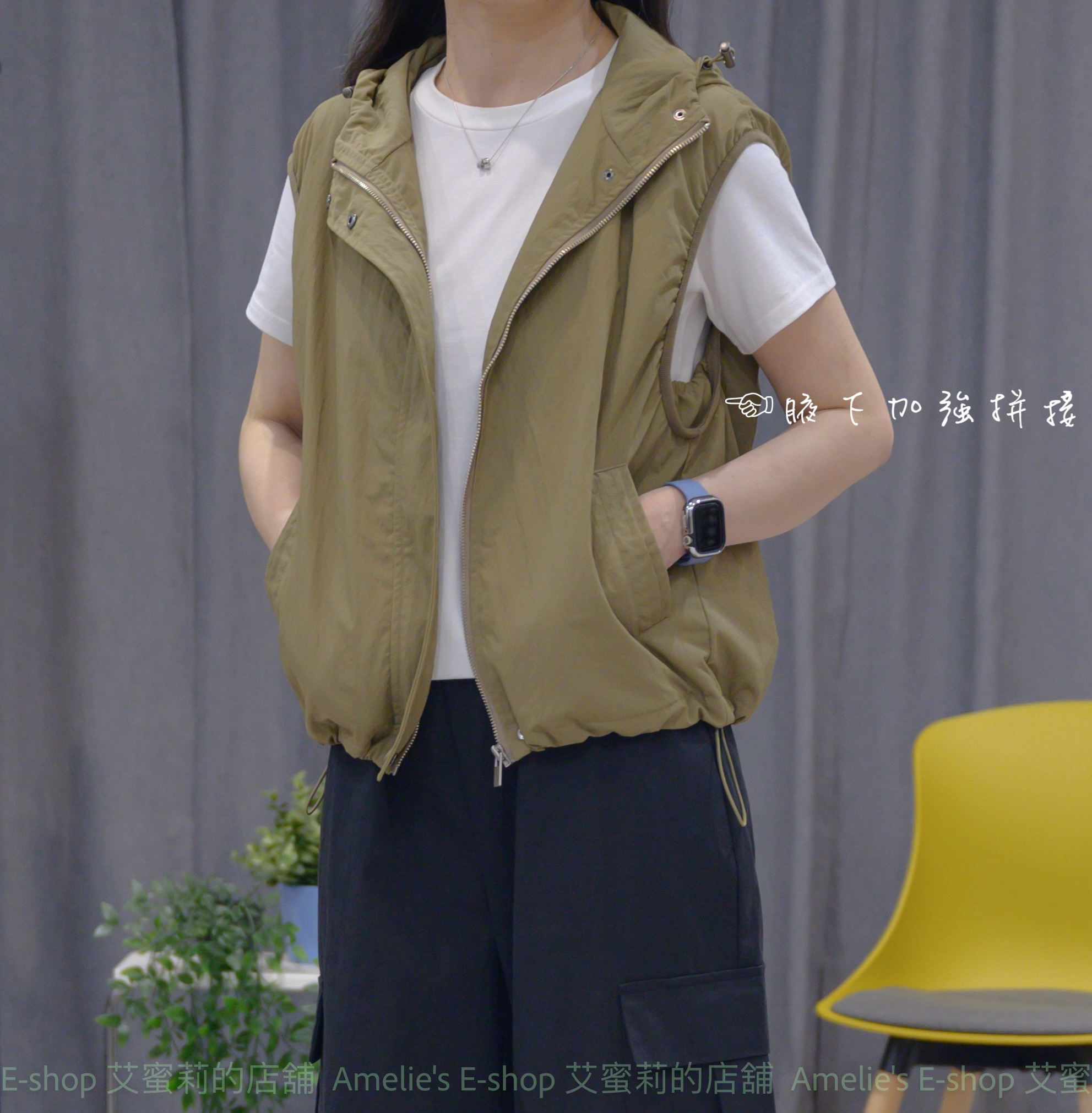 ➽此款初秋厚薄度口袋連帽背心著重活動時的輕巧俐落,尤其在春、秋忽冷忽熱的季節,穿搭讓妳很困擾時,是最適合的多層次穿搭單品。
