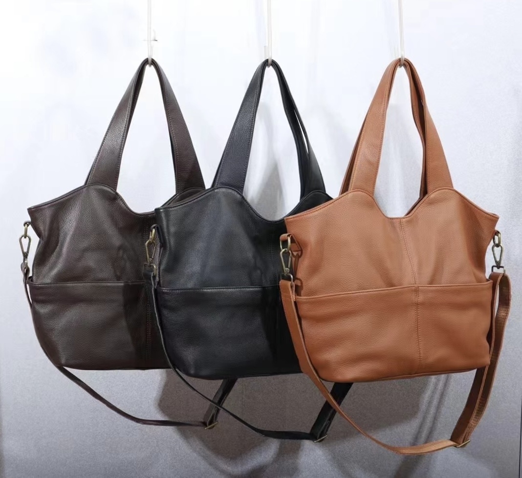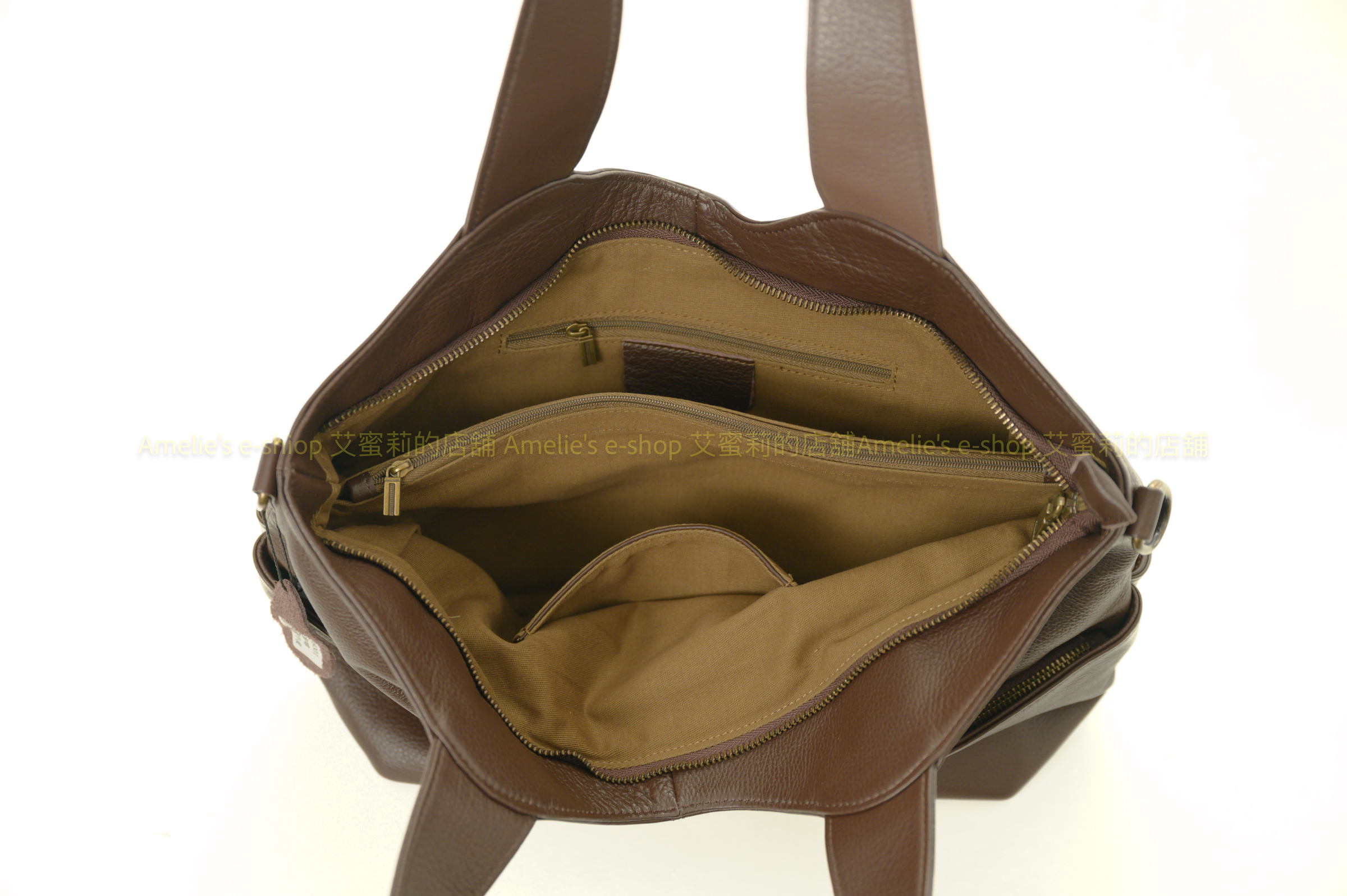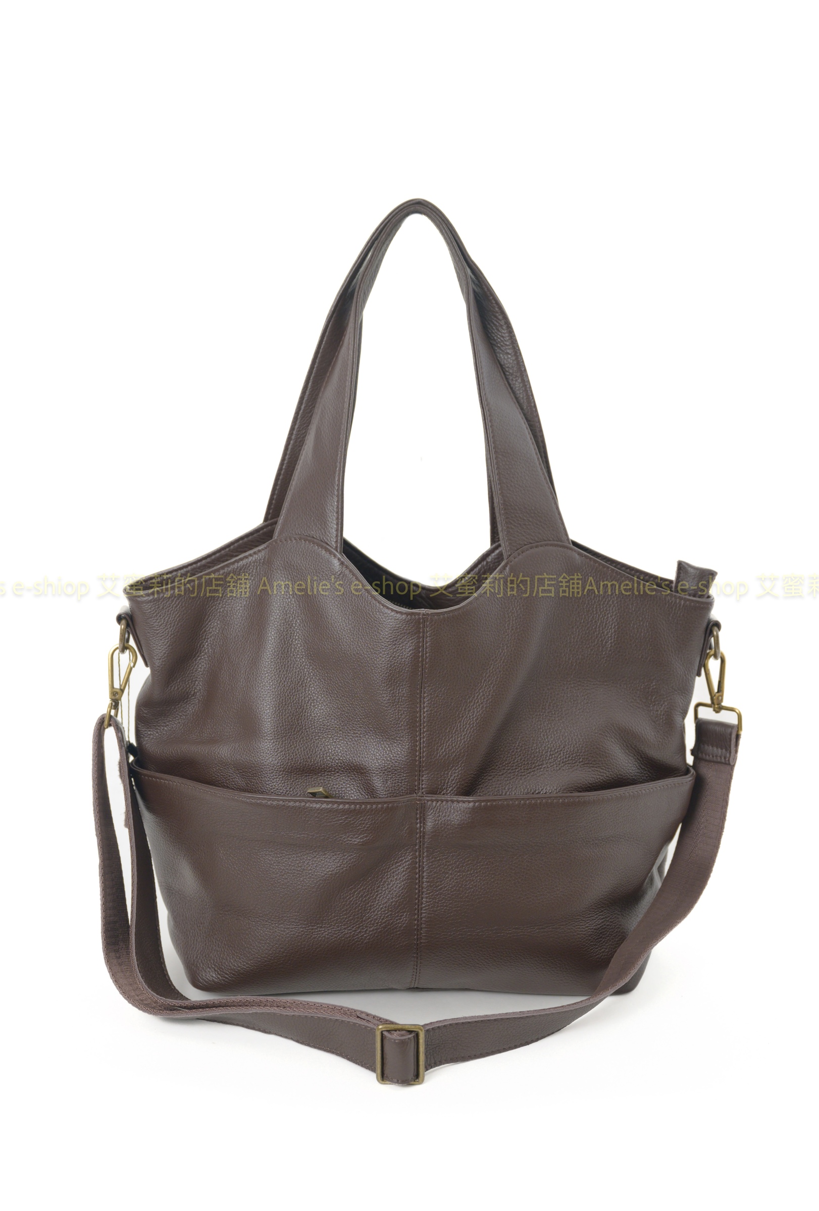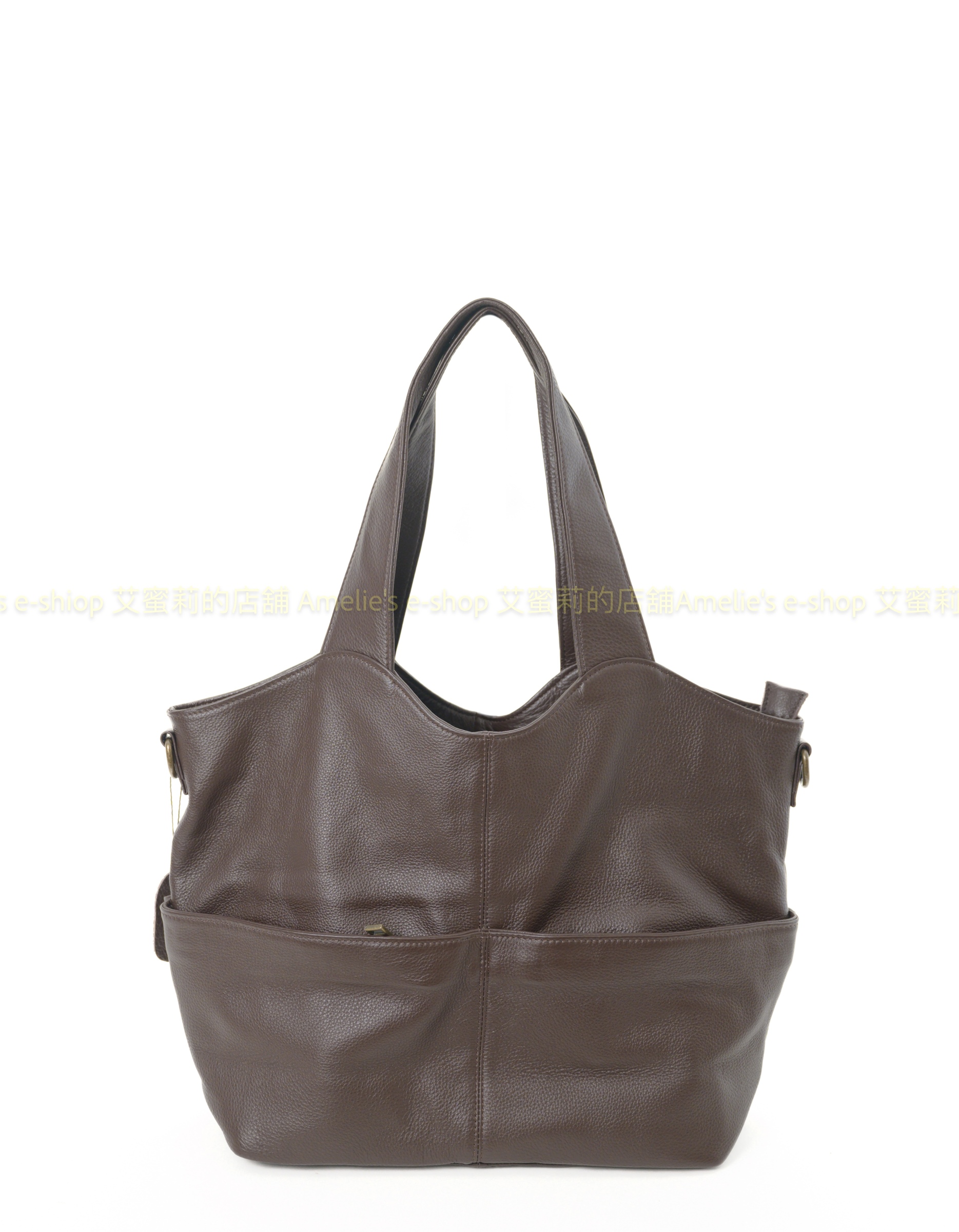 ★柔軟頭層牛皮雙拉鍊口袋托特包[3色]