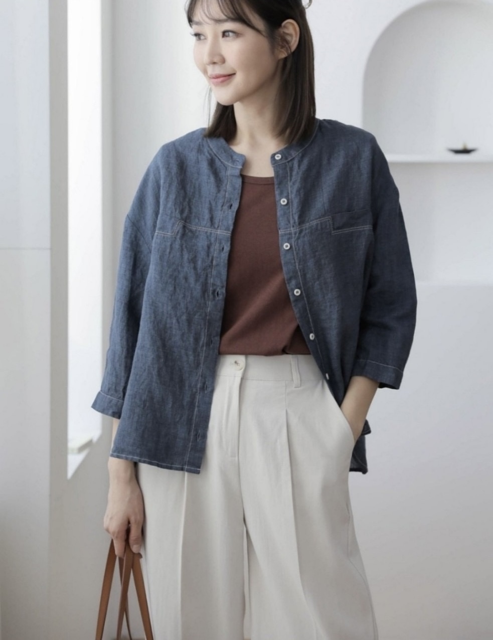 ➽無印簡約純色襯衫,是不同年齡層女性衣櫃裡可有的不敗單品,可正式可休閒。