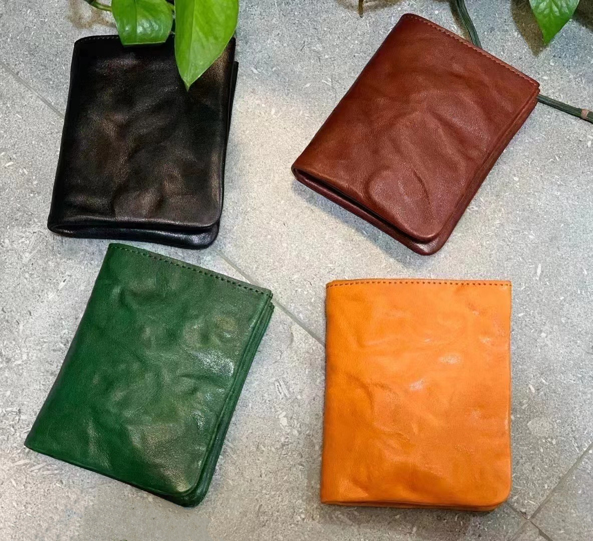 ★直式簡約中性手抓紋植鞣牛皮零錢袋短皮夾[4色]★𝐀𝐦𝐞𝐥𝐢𝐞實品拍攝照