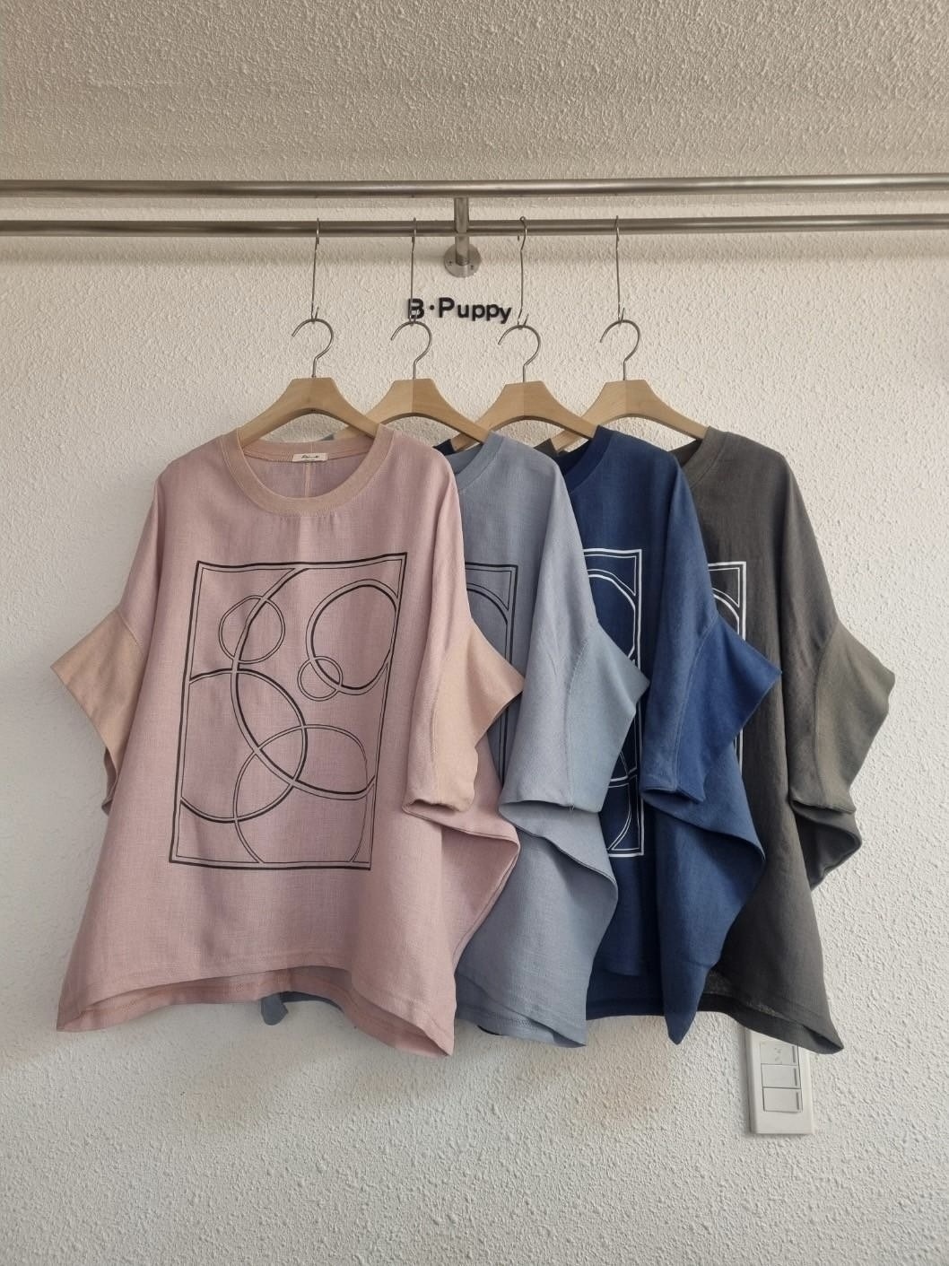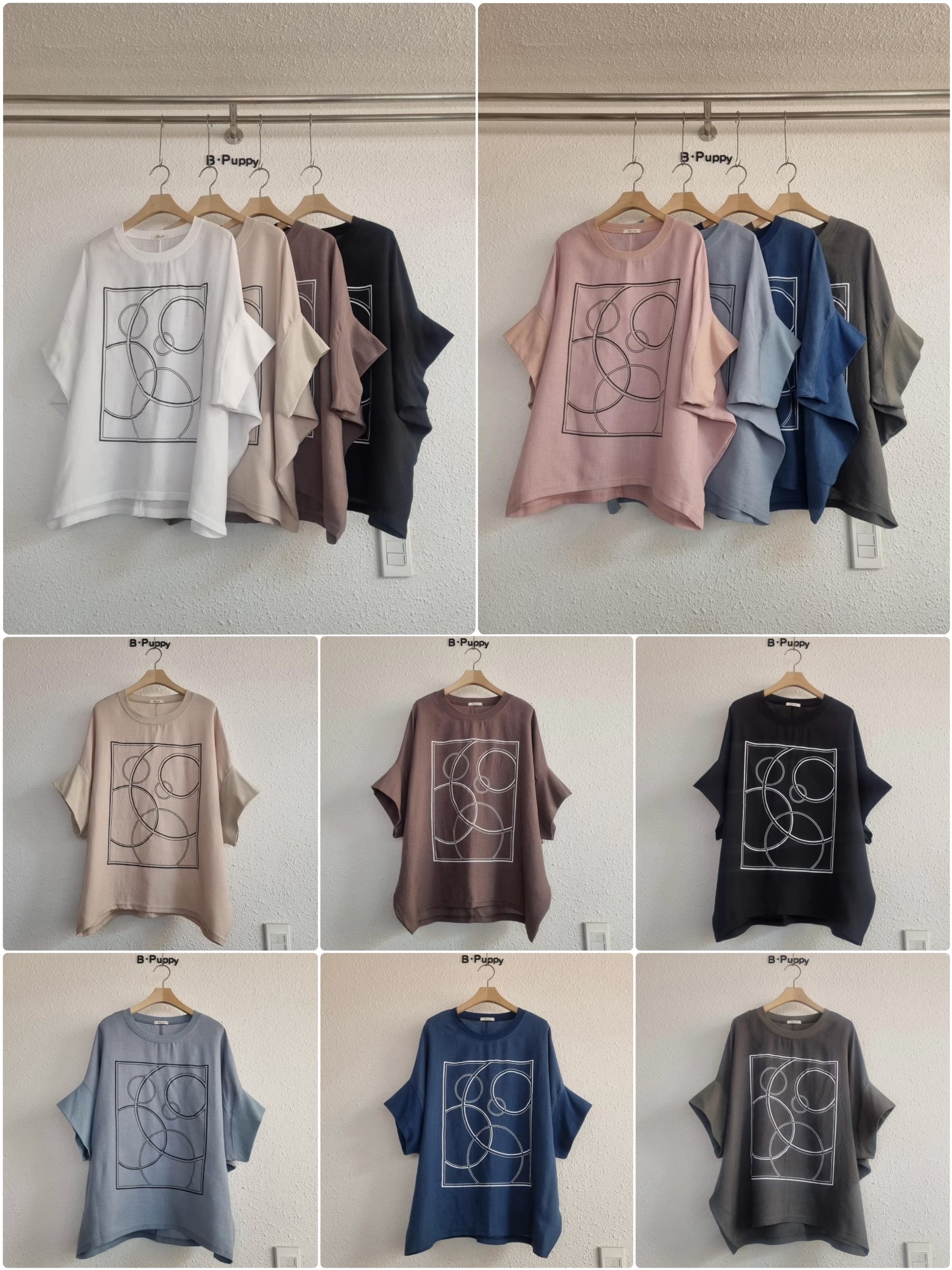 🇰🇷正韓大小圓圈連肩飛鼠五分袖麻質上衣[8色]★𝐀𝐦𝐞𝐥𝐢𝐞實品穿拍¹¹³