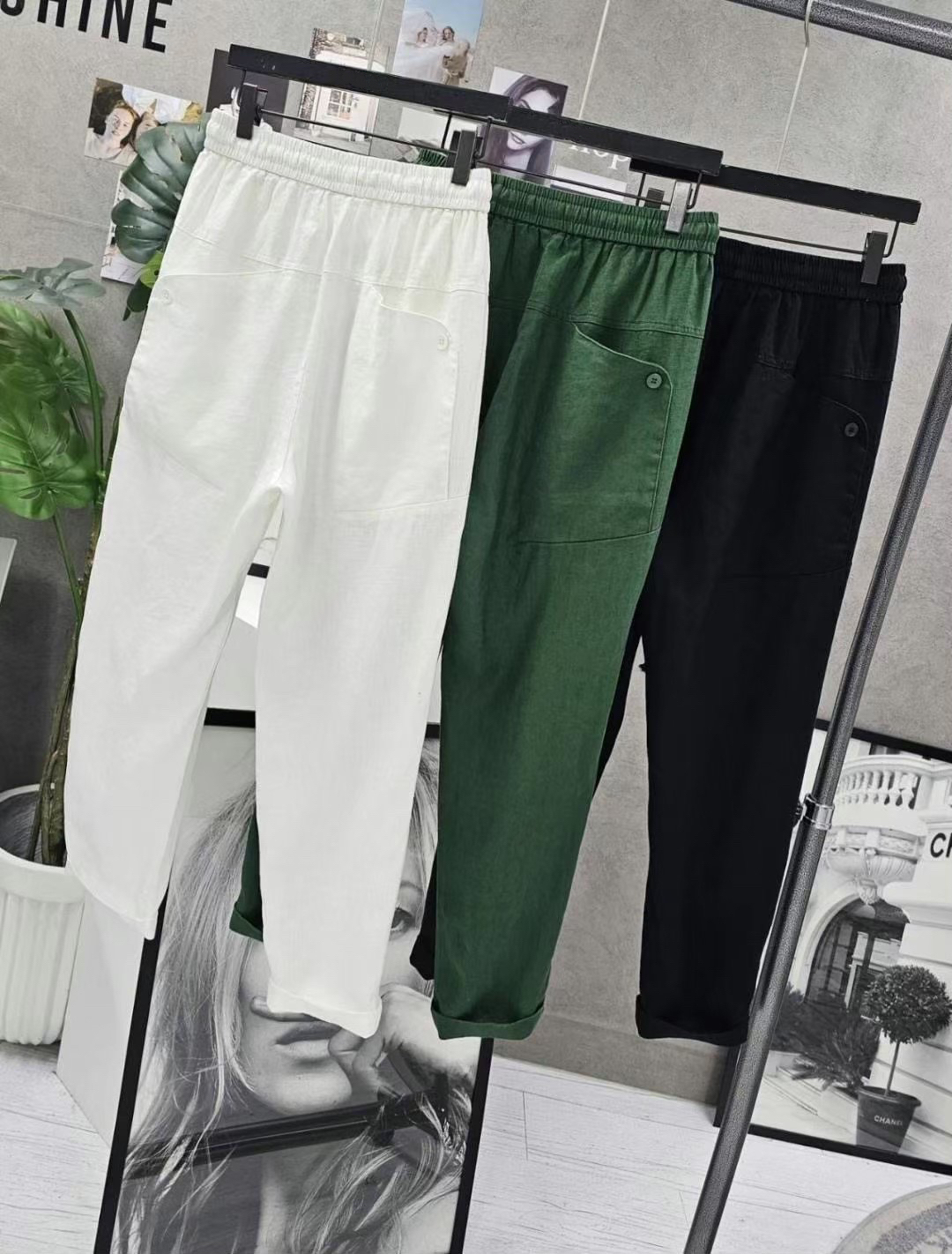🇰🇷正韓棉麻後釦造型口袋錐形長褲[3色]