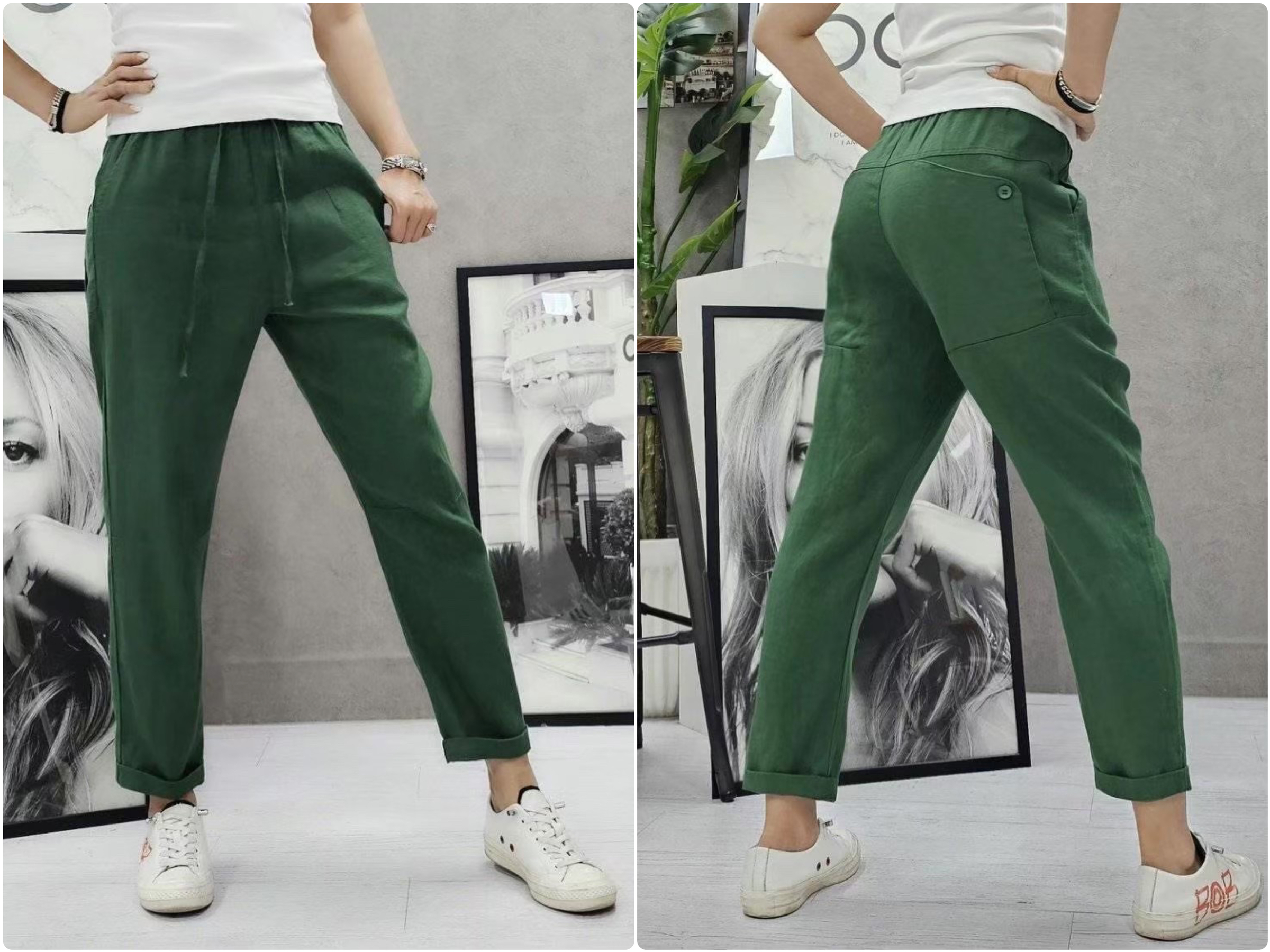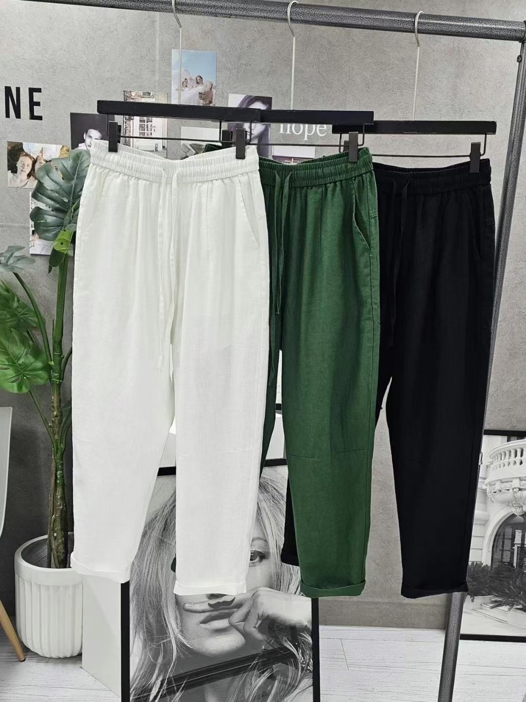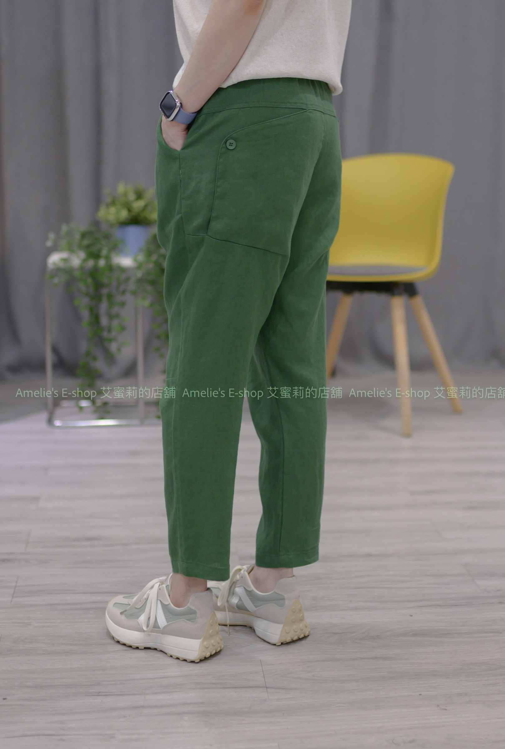 ➽適合夏季穿著的透氣麻料,穿起來不黏貼腿,全腰輕鬆舒適的鬆緊綁帶腰頭,搭配後臀有釦大口袋造型,簡單穿搭休閒帥氣感十足。
