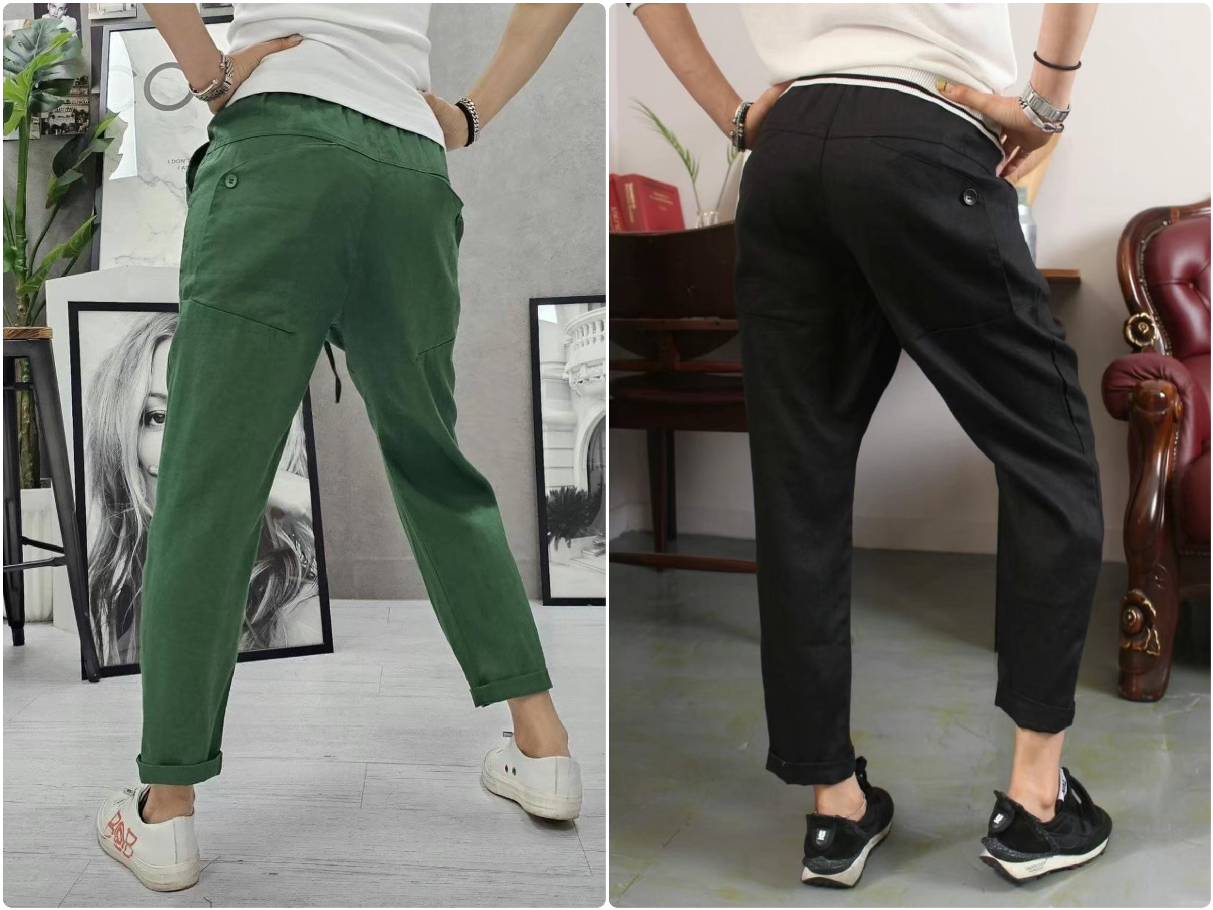 🇰🇷正韓亞麻後釦造型口袋錐形長褲[3色]