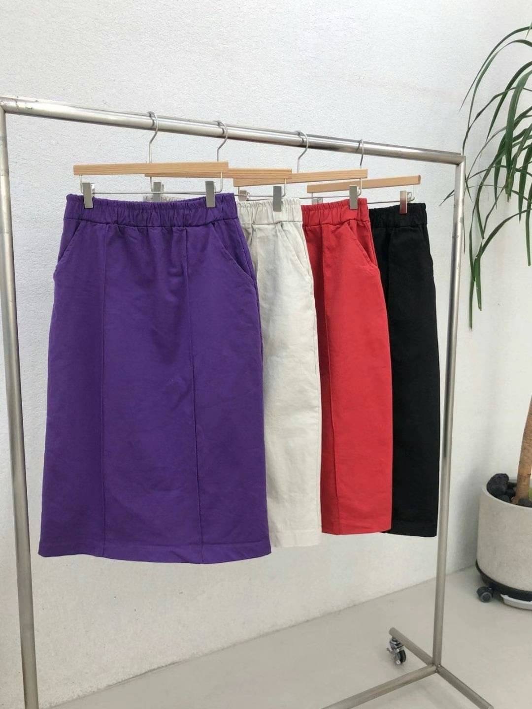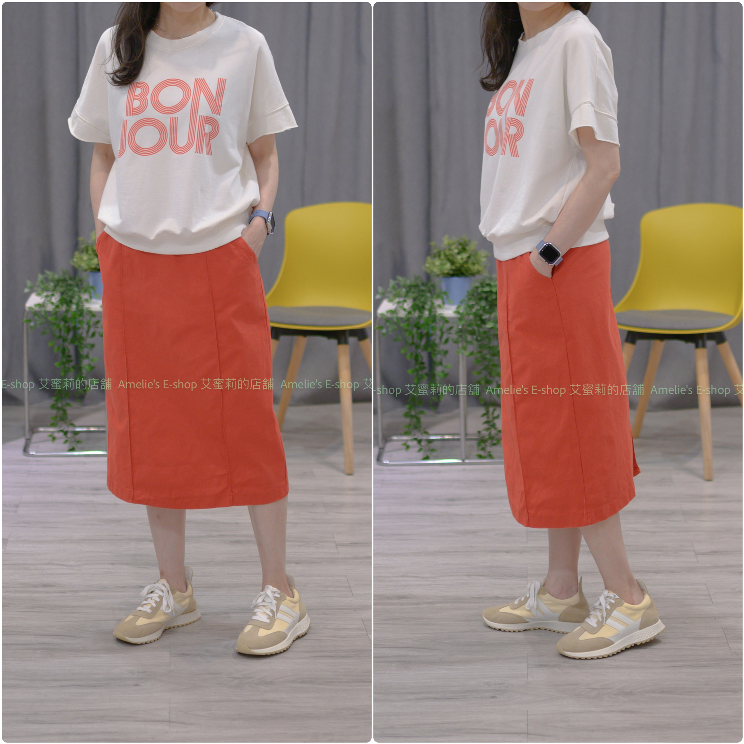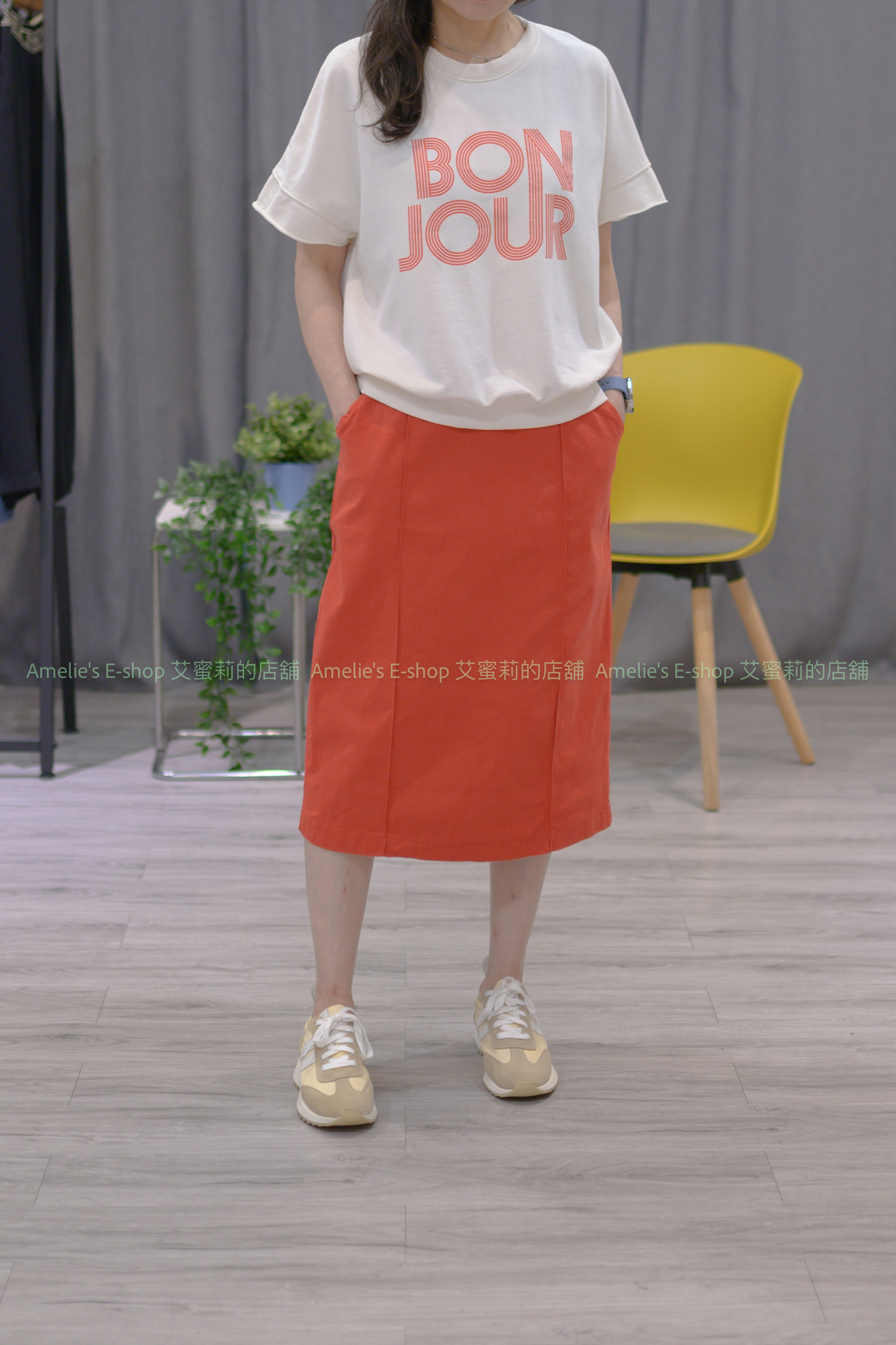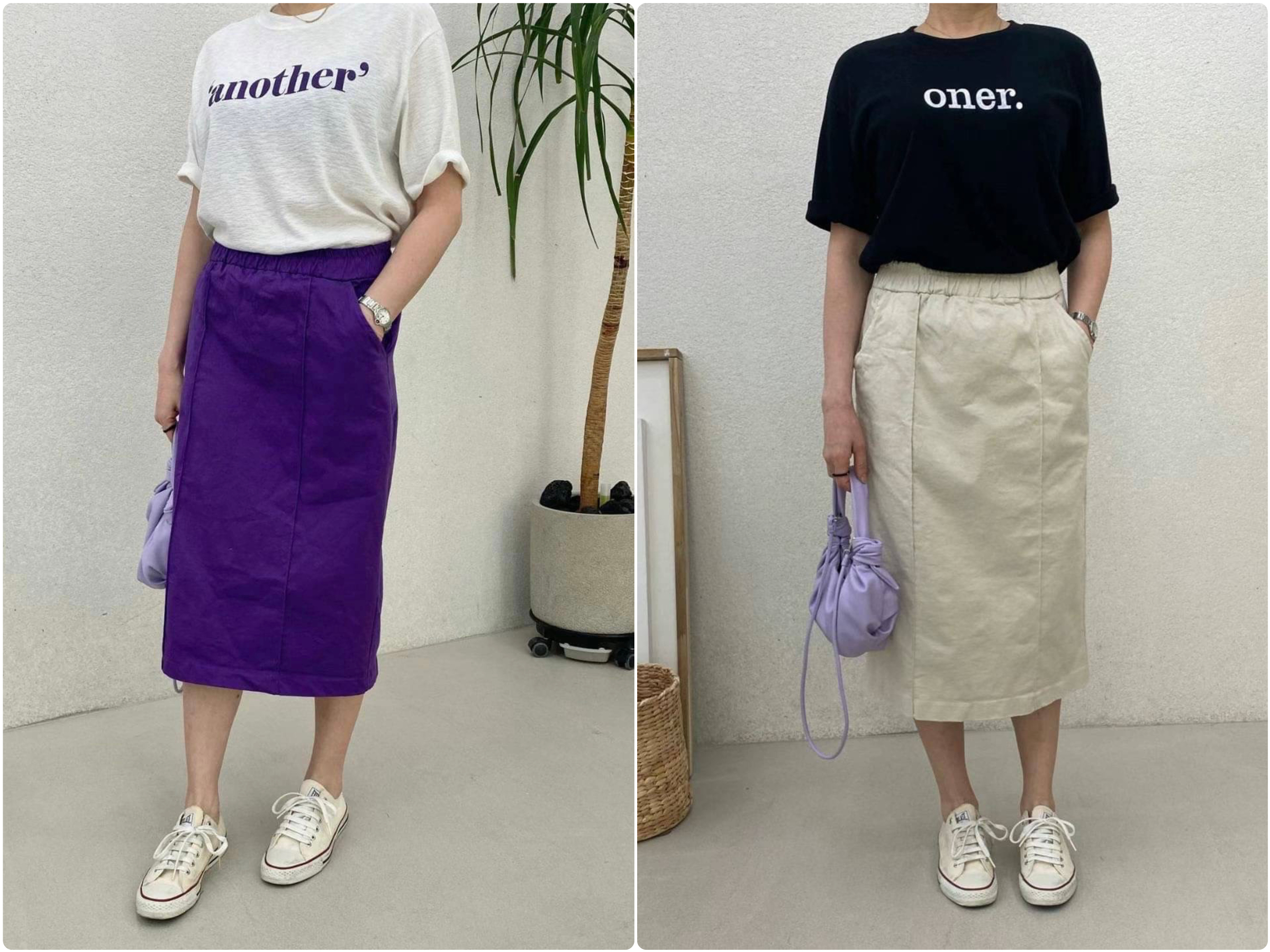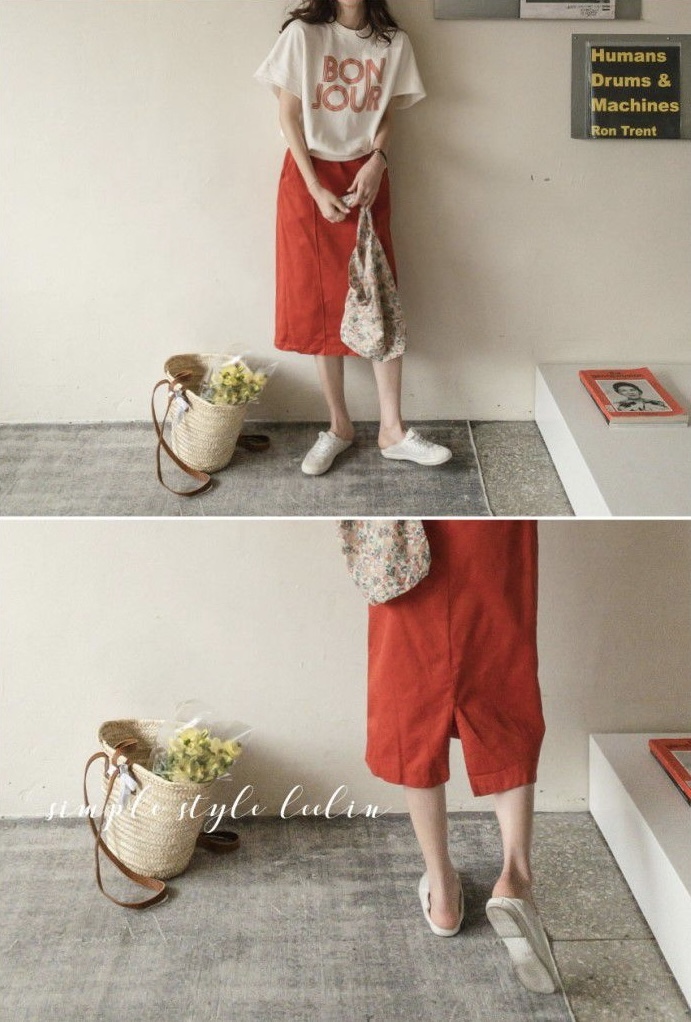 🇰🇷正韓半袖BONJOUR棉質上衣+純色彈性修身開衩煙管長裙=套裝[4色]★實品穿拍