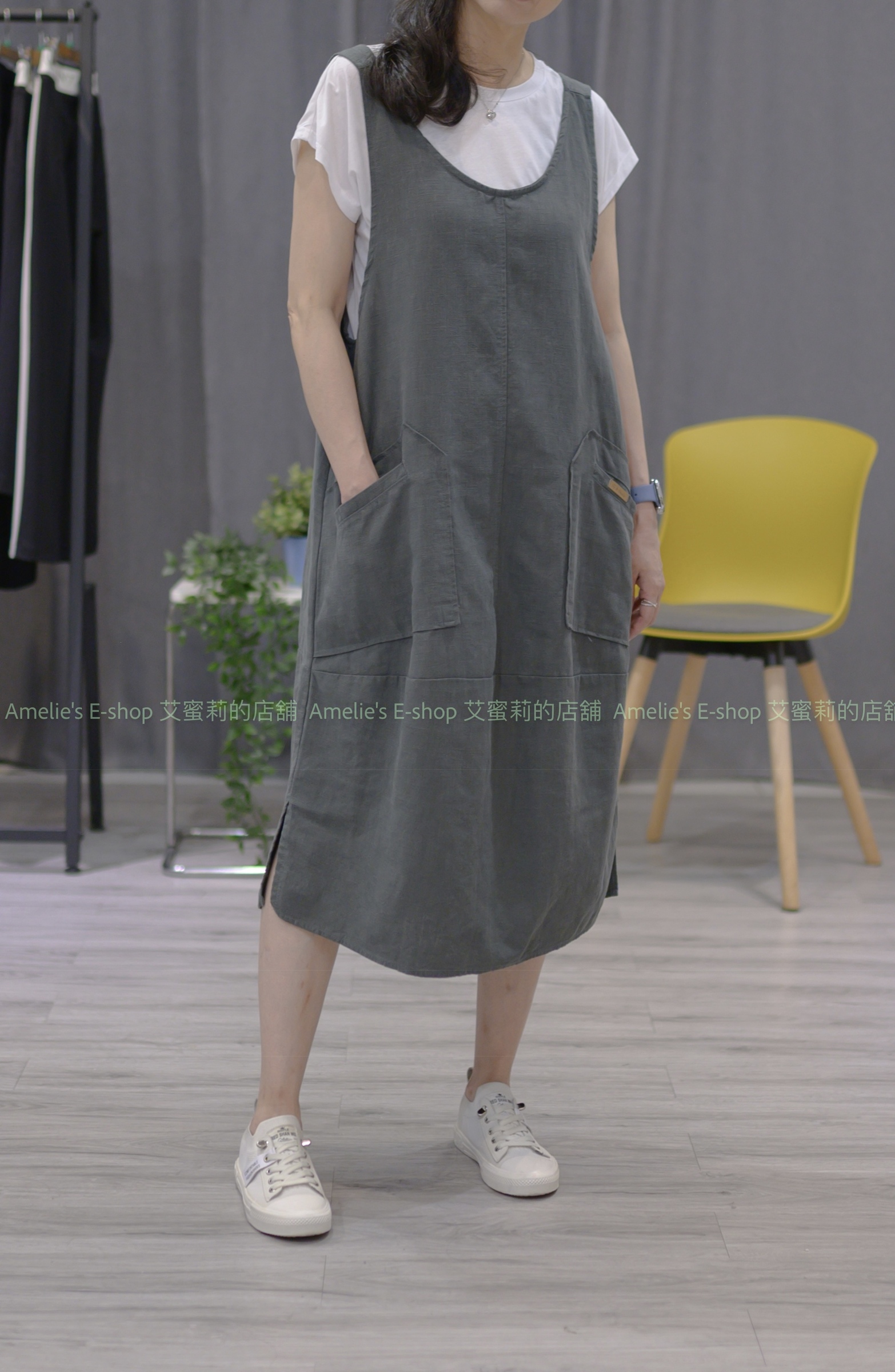 🇰🇷正韓口袋小皮標吊帶背心洋裝[3色]
