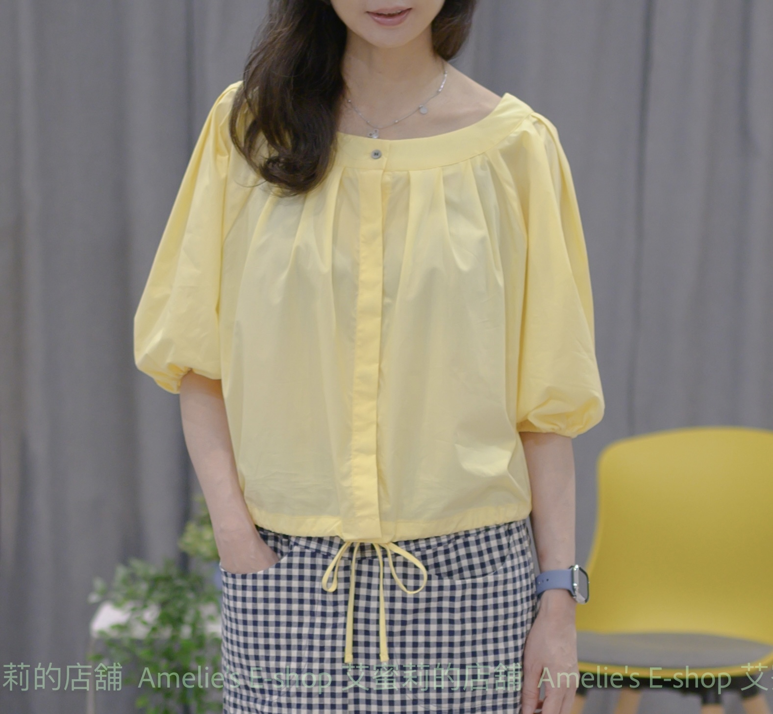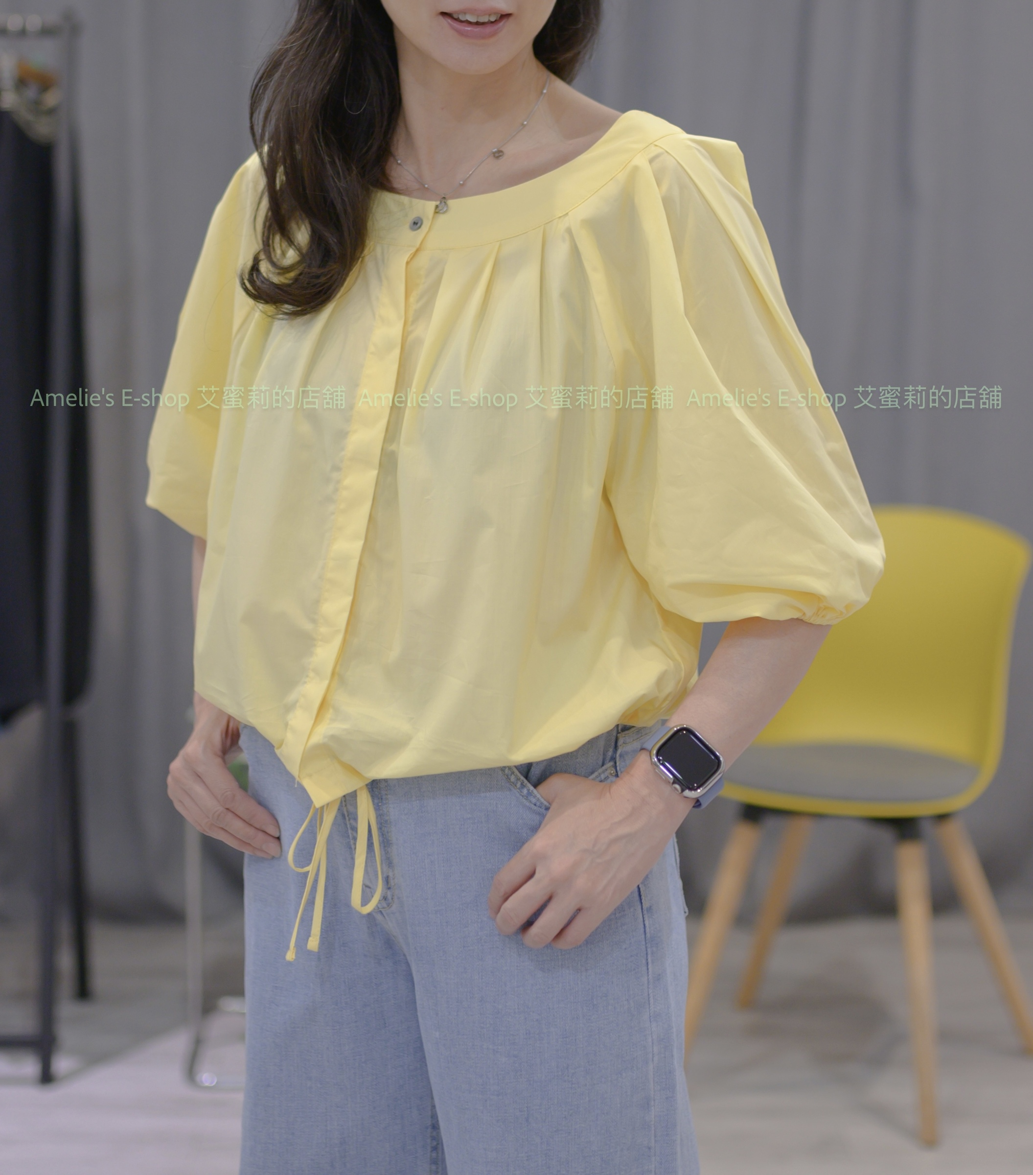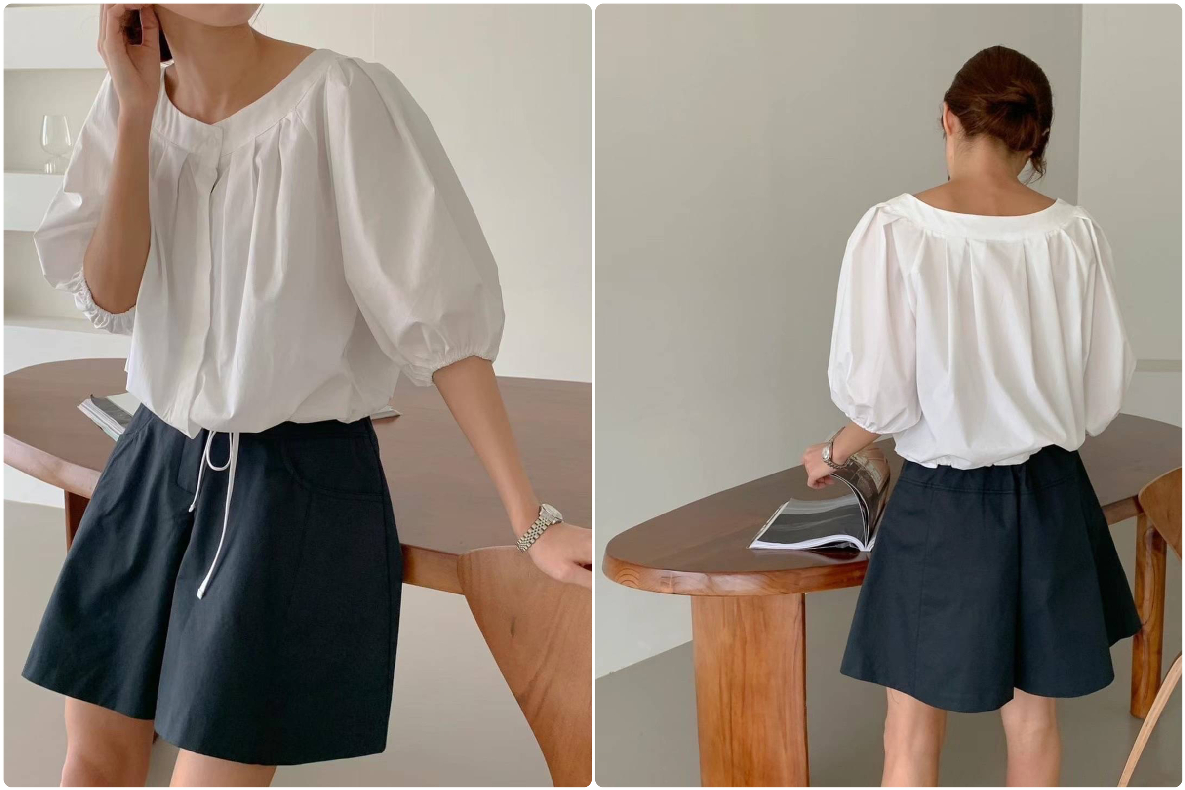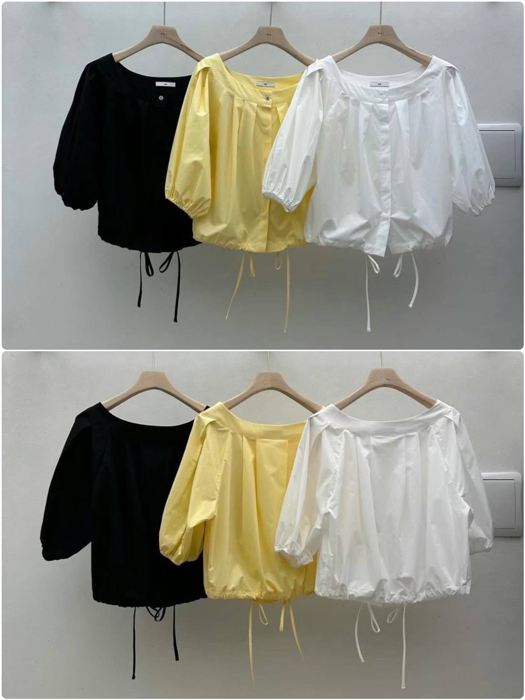 🇰🇷正韓大圓領壓褶五分花苞袖綁帶襯衫[3色]