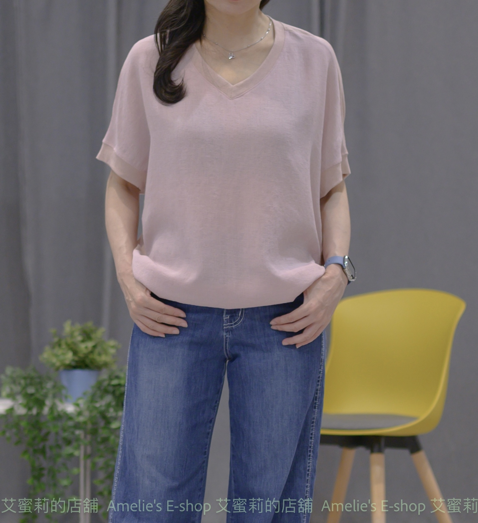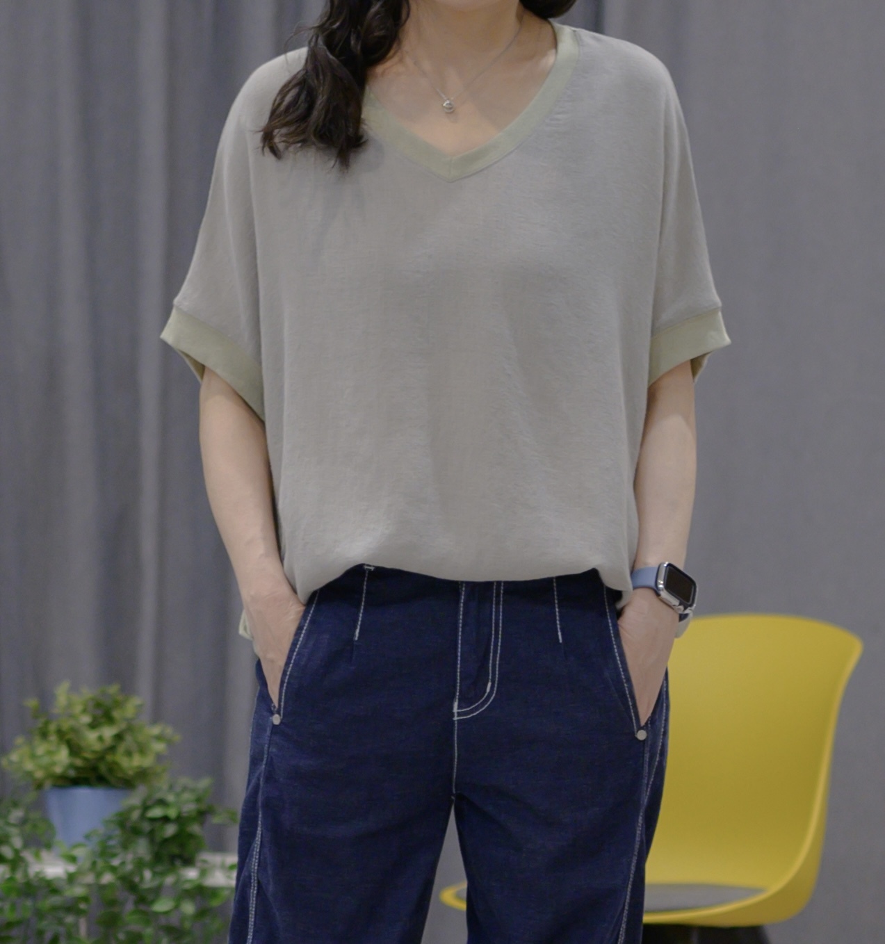 ➽經典V領的俐落剪裁線條,露出鎖骨和胸前肌膚,視覺上能夠更好的襯托出優美的頸部線條,並從視覺上修飾臉型並具延伸感,使你看起來更顯瘦高,為女性必備基本款。