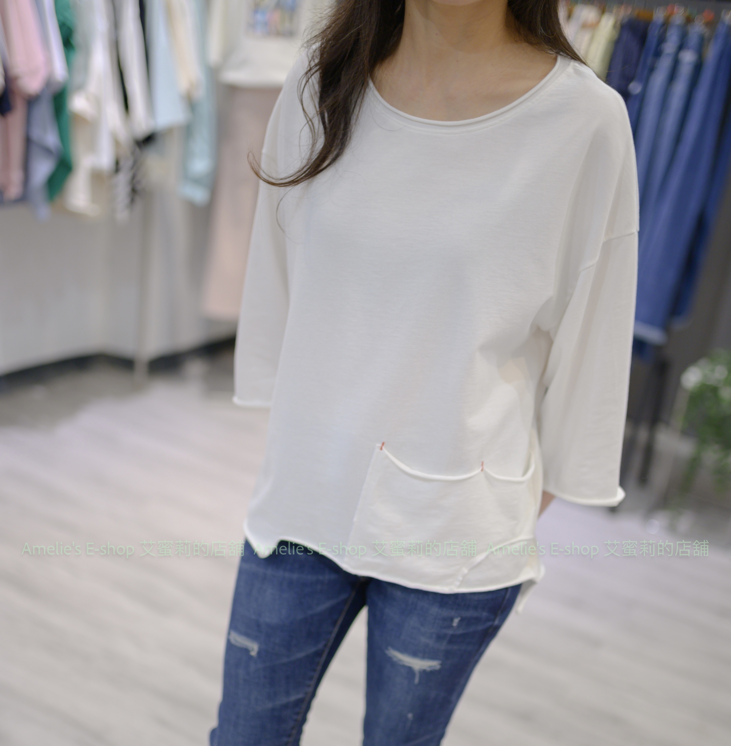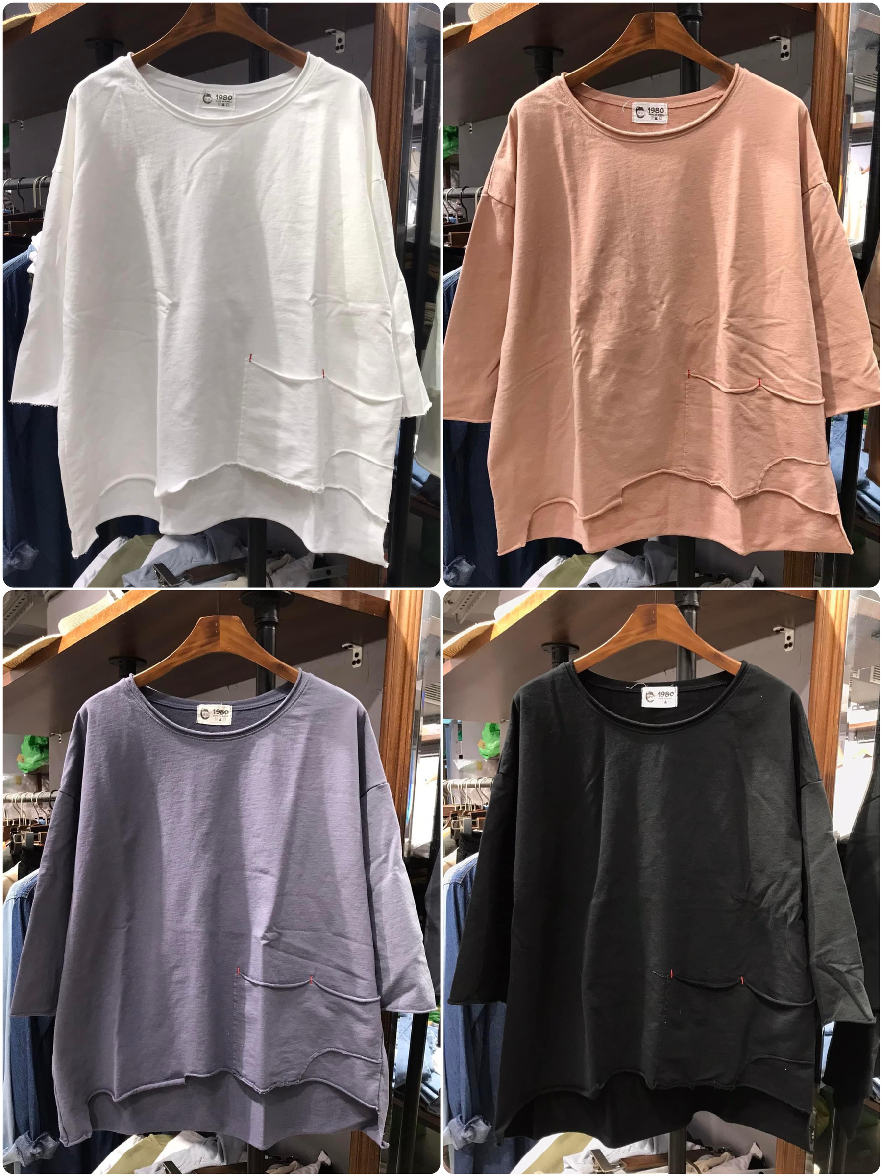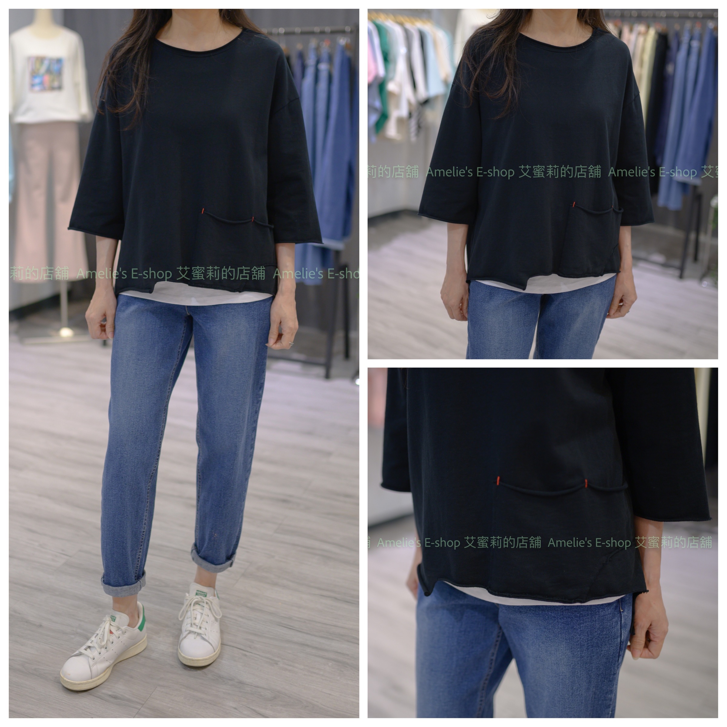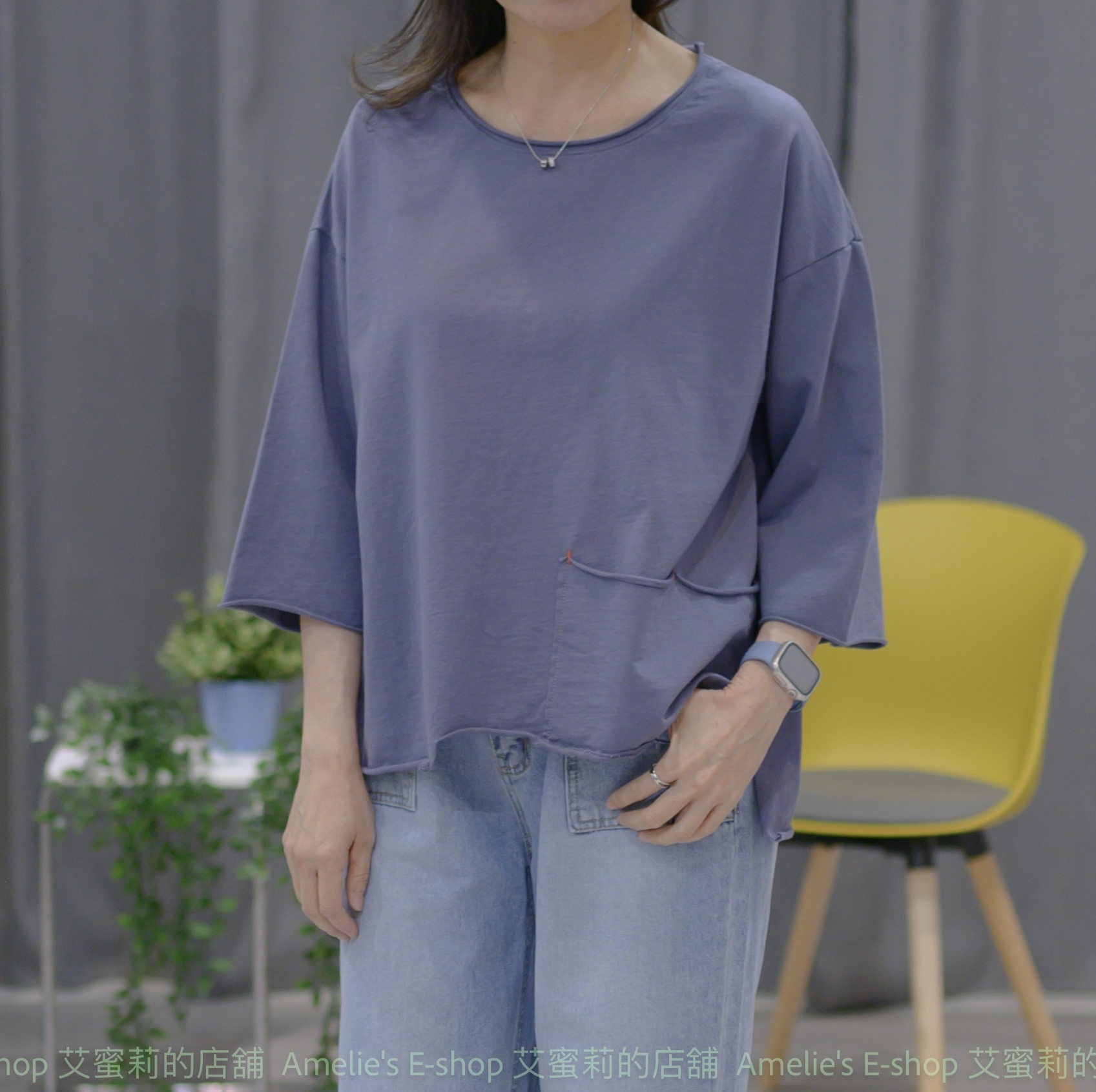 🇰🇷正韓純棉下缺口口袋七分袖T恤[4色]