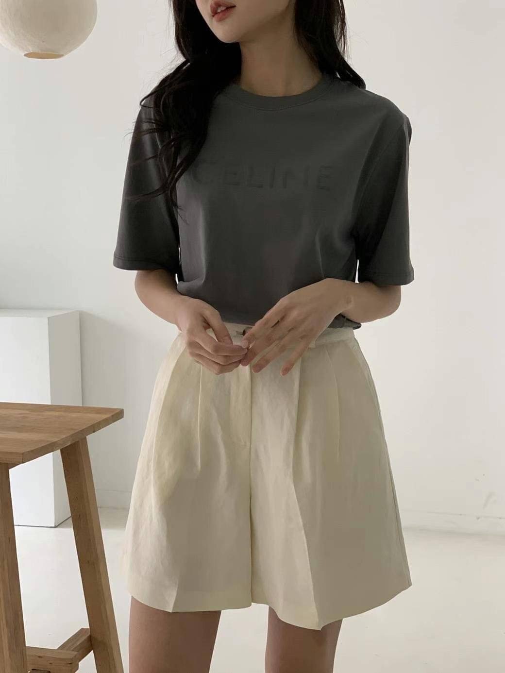 ➽T恤是非常值得入手的基礎服飾之一,此類單品的存在感很強。這款素面為基底,只以簡約的英文字母點綴胸前,怎麼穿搭都清爽好看。