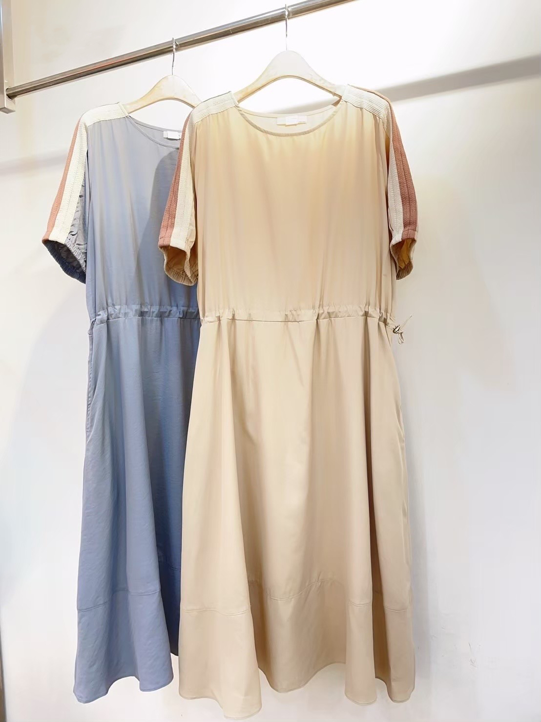 ➽肩袖撞色織帶更顯活潑。