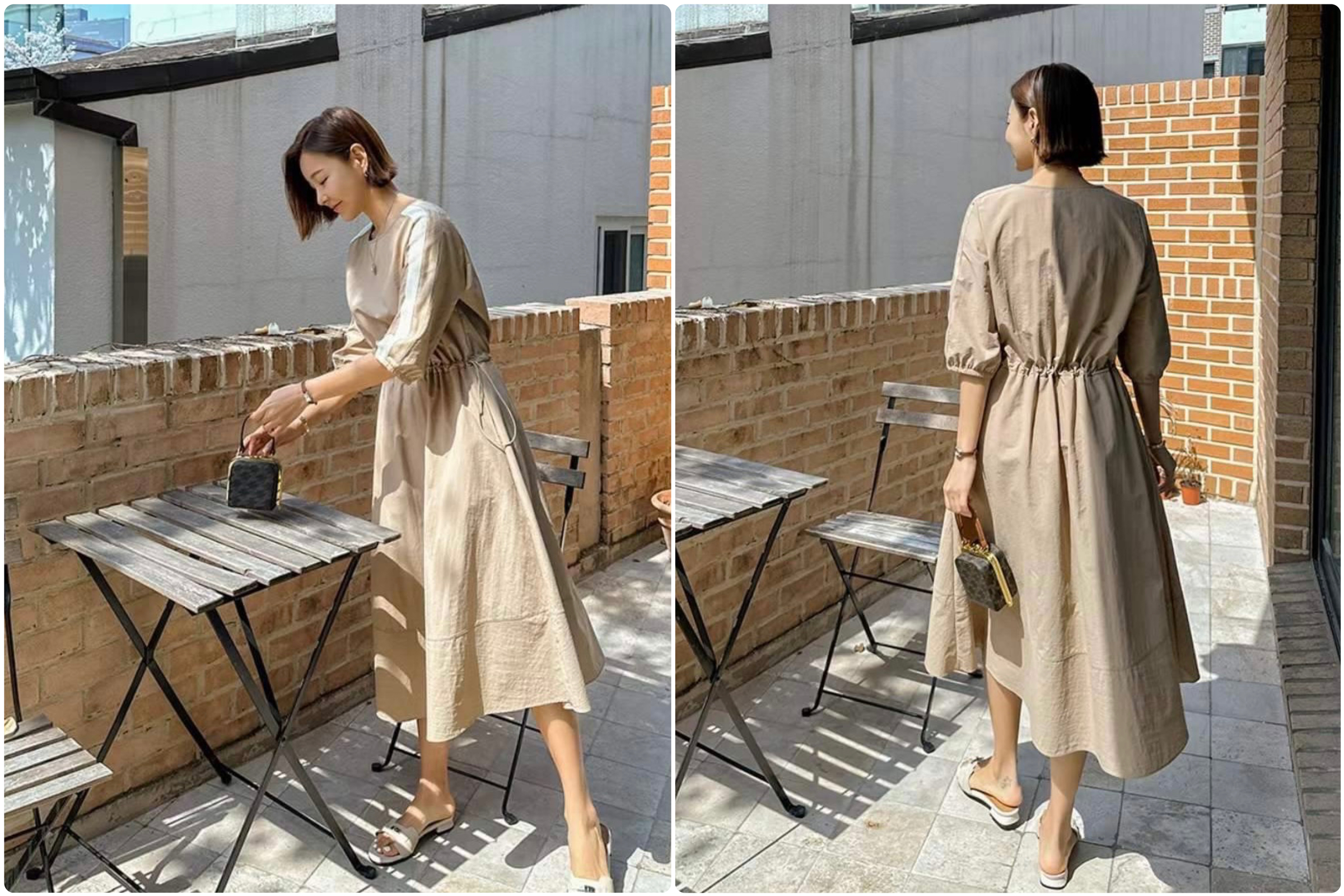 ➽過膝的裙長修飾小腿線條;整體洋裝線條乾淨俐落,氣質加倍。