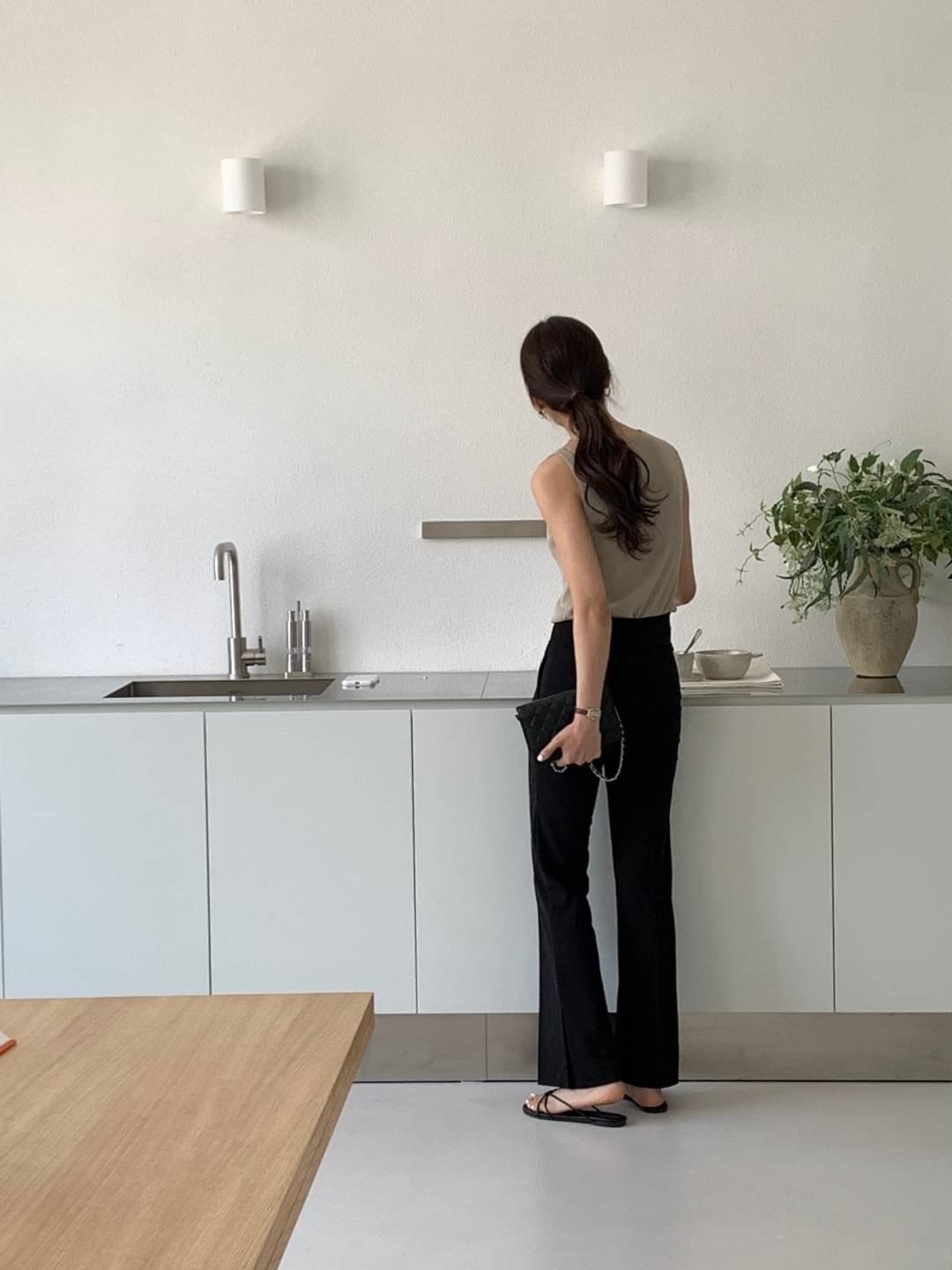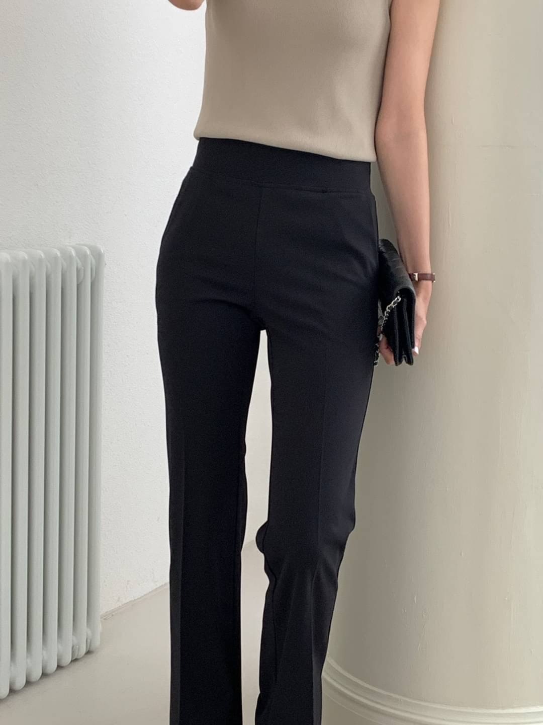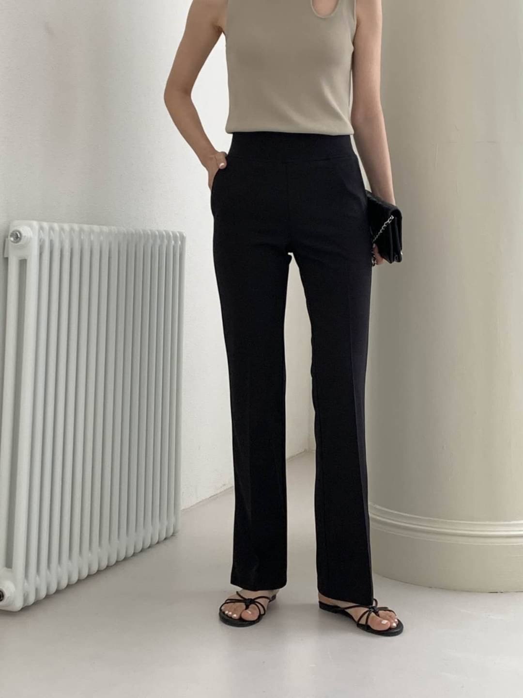 🇰🇷正韓薄料寬版腰頭下開岔微喇叭長褲[2色]★實品穿拍