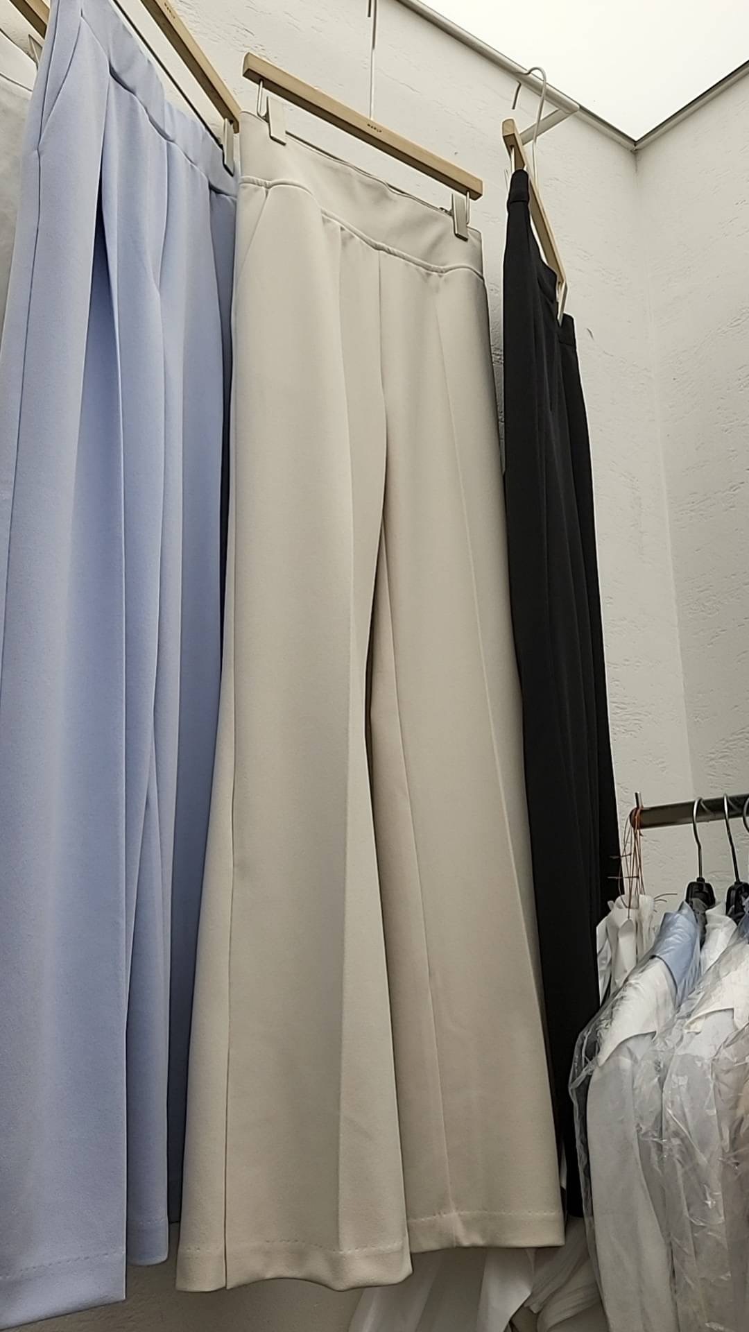 🇰🇷正韓薄料寬版腰頭下開岔微喇叭長褲[2色]
