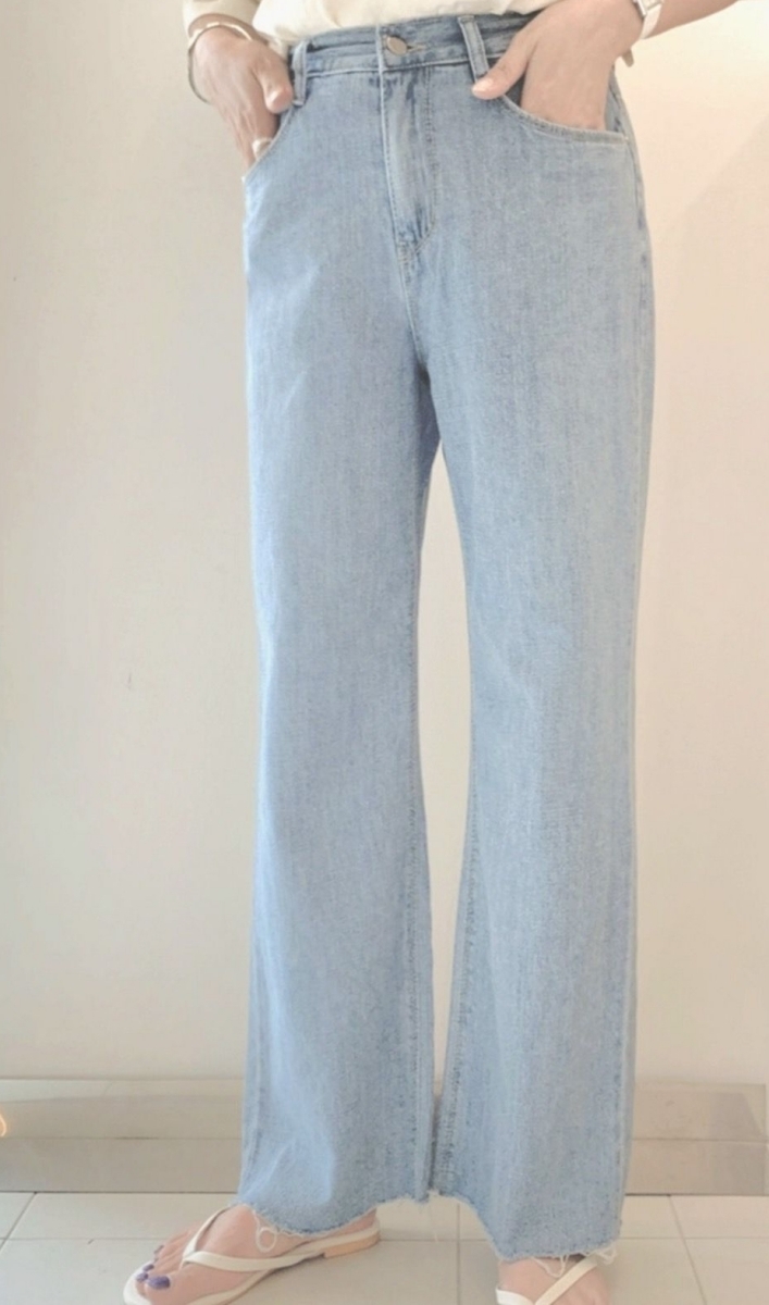 🇰🇷正韓褲管鬚鬚直筒牛仔褲[1色]