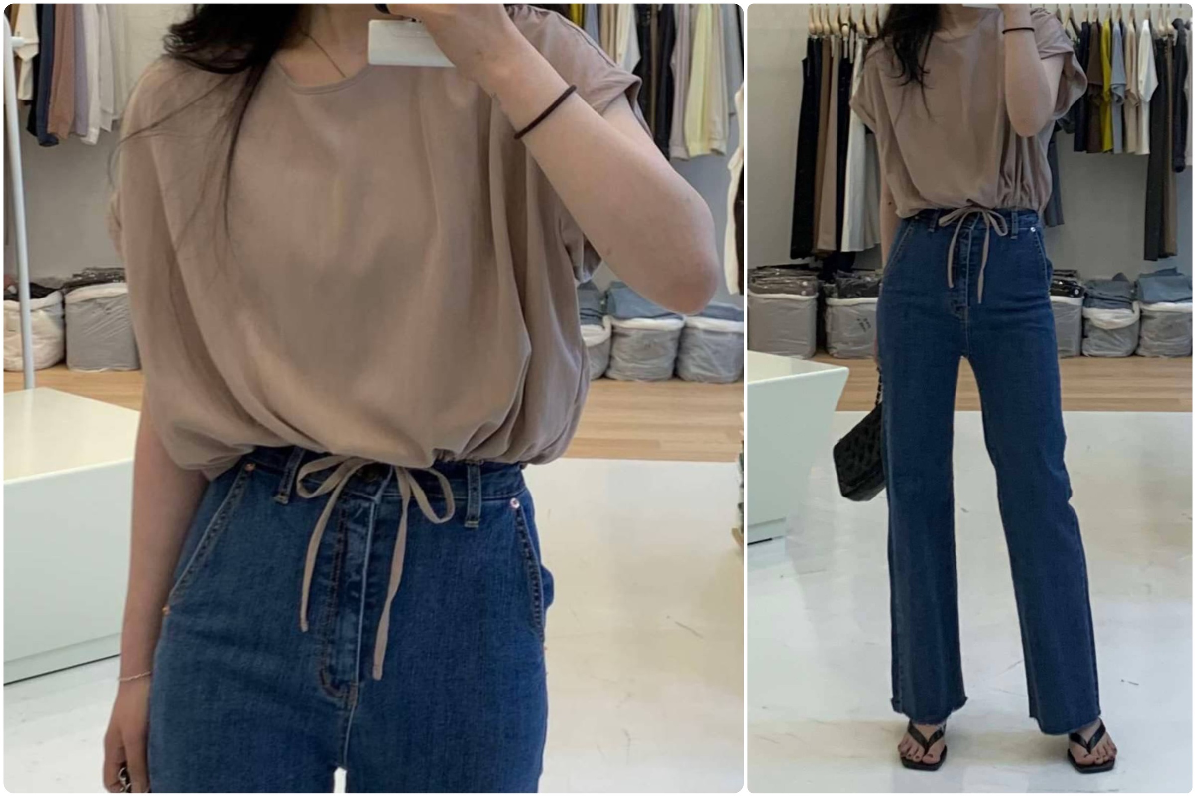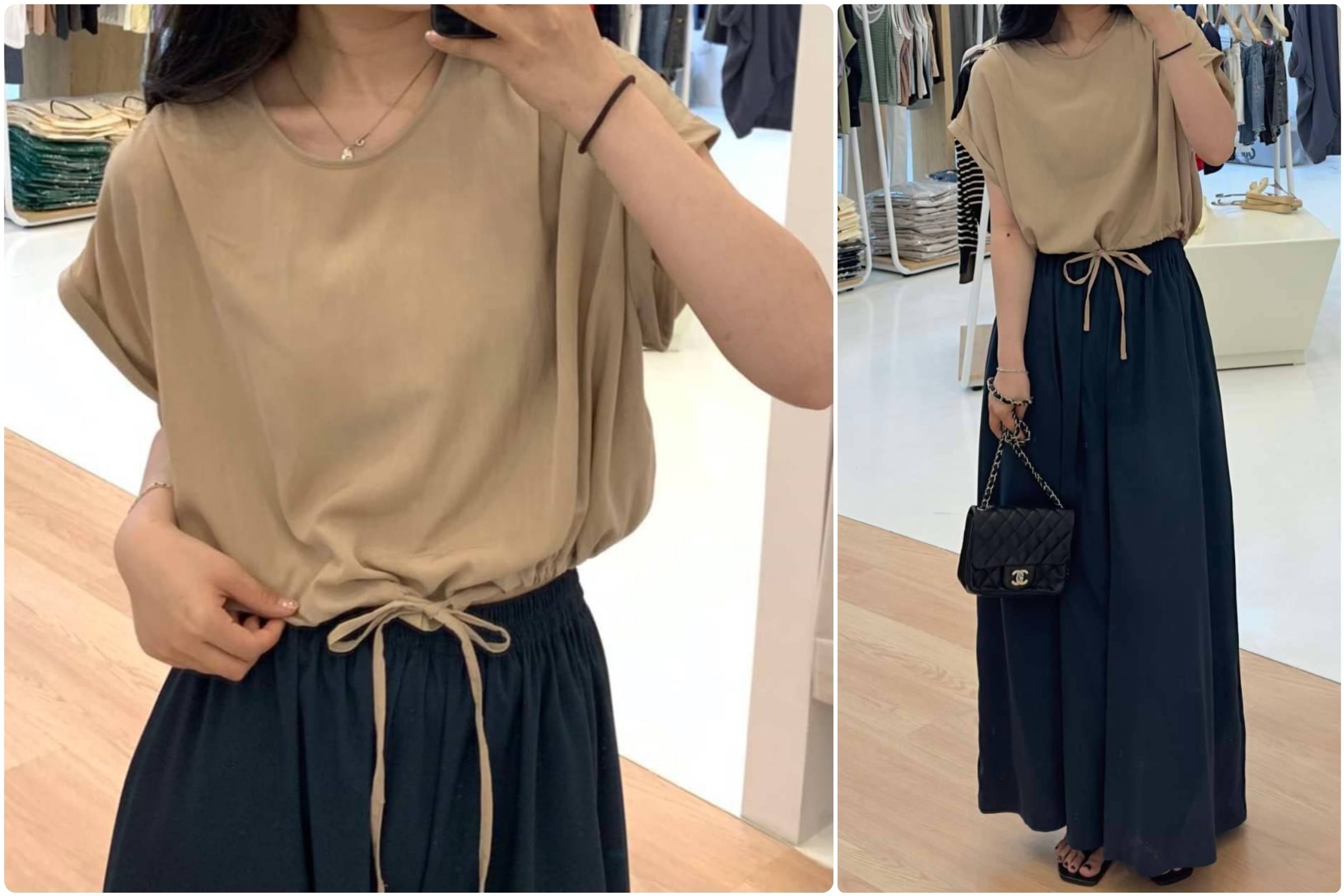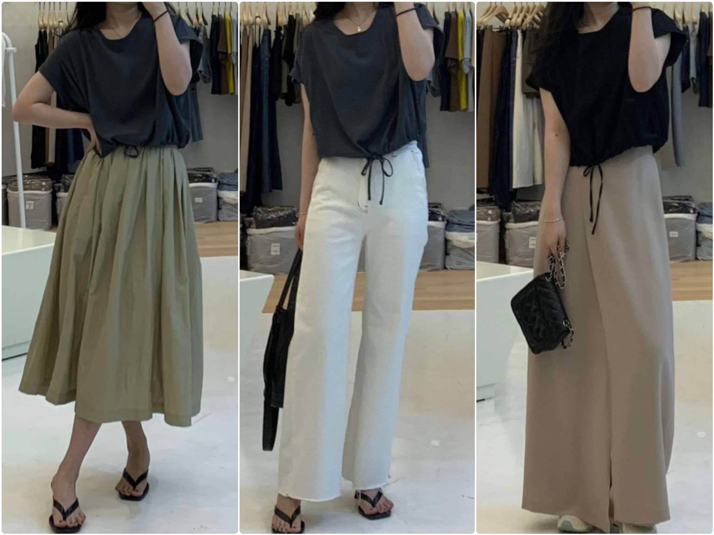 ➽簡約素面,下擺穿繩綁帶設計,可鬆綁想要的長度,方便搭配任何款式。
