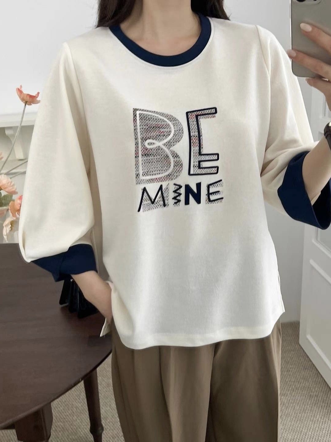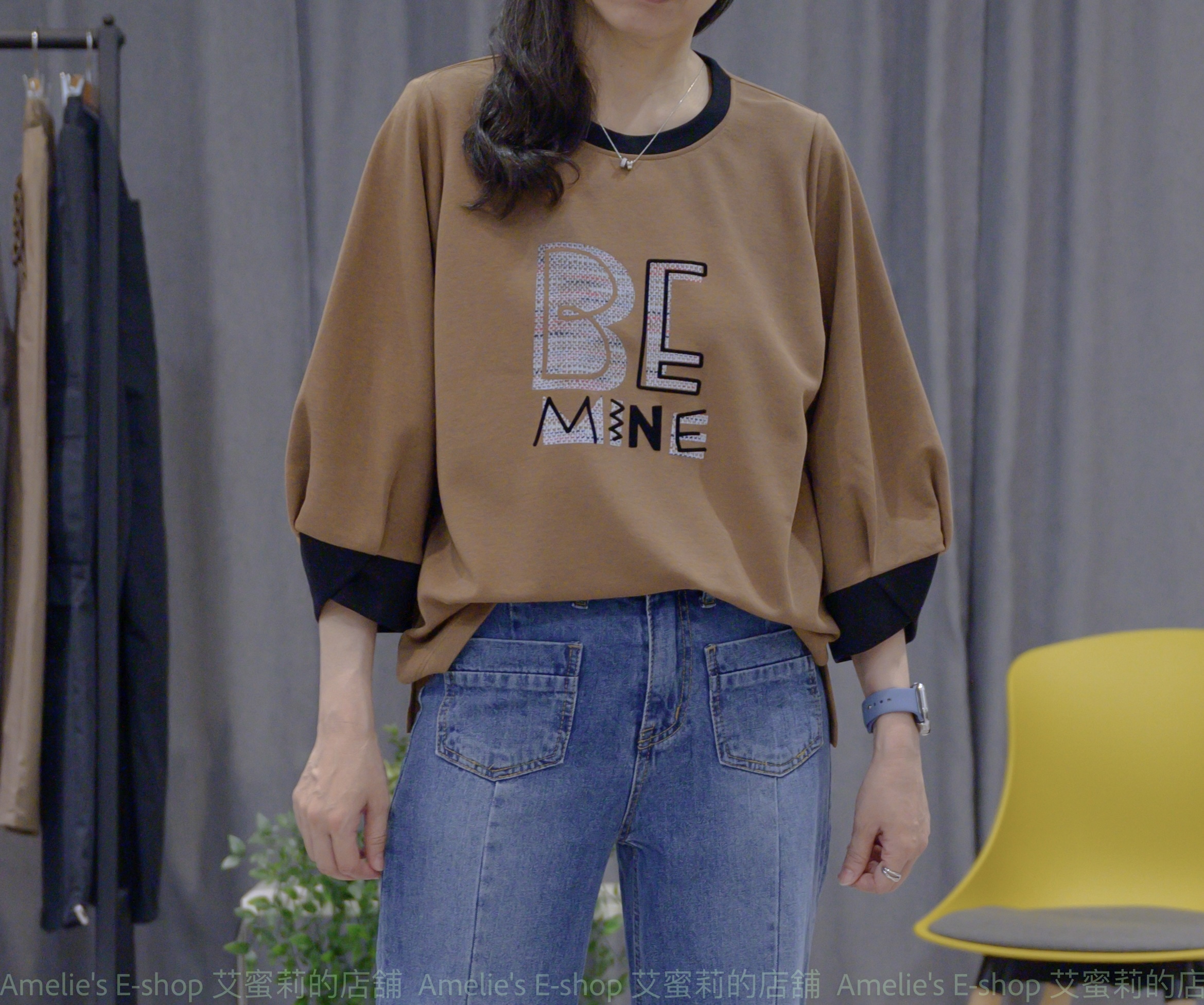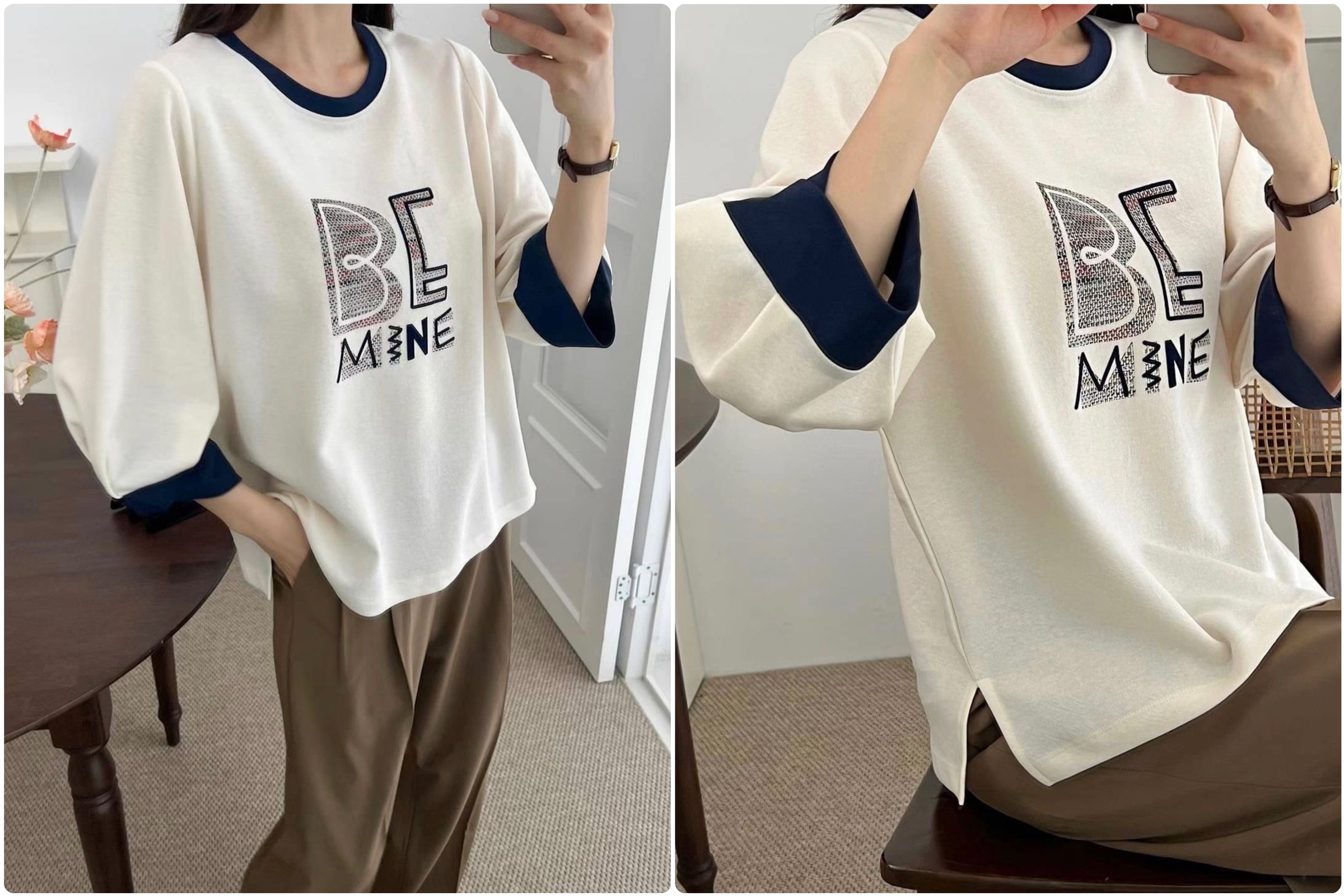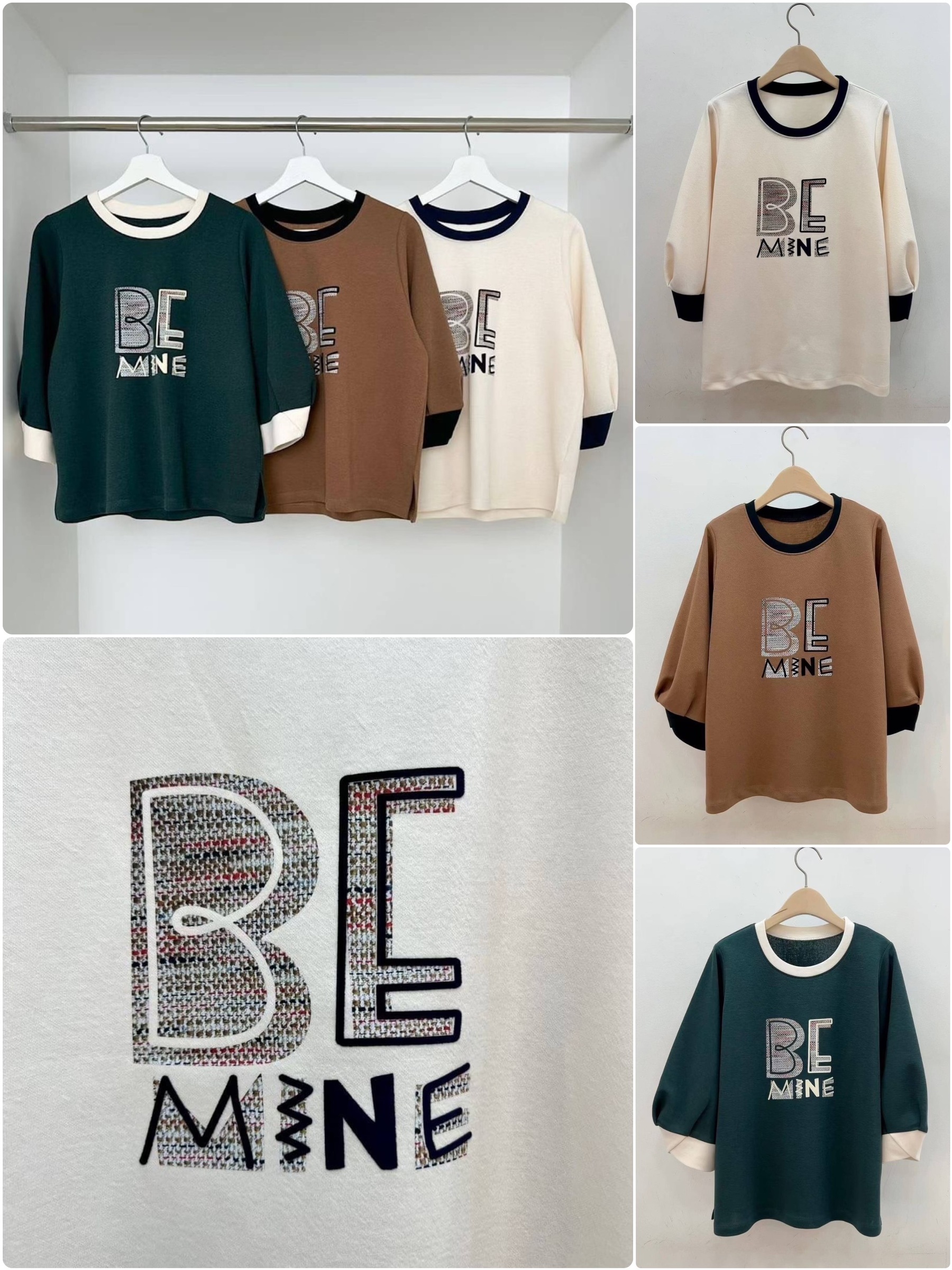 ➽胸前高溫熨燙BE MINE圖騰,增加了整體的活潑度,沒有過多的裝飾看起來更減齡,穿著時更亮眼。