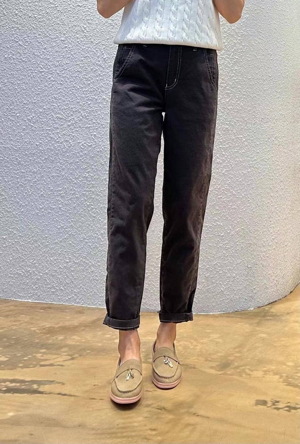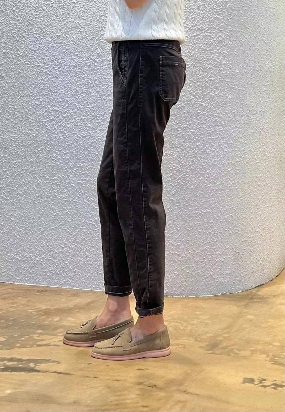➽標榜隨性、中性、自在的形象,強調大腿微微寬鬆、膝蓋以下稍窄的褲型,通常褲管都會反摺露出腳踝,穿上之後看起來就是筆直寬鬆的腿型。